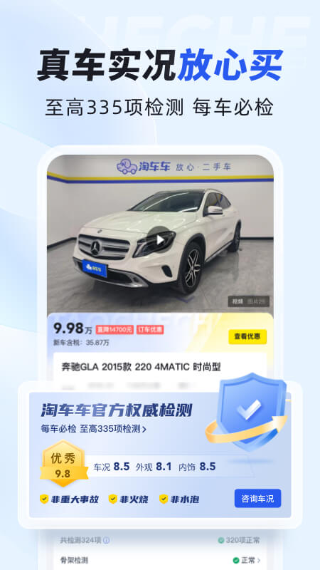 - 「真实车况·放心购买」:每辆车都必定经过检测,车况更加透明,使您在购车时更加安心。