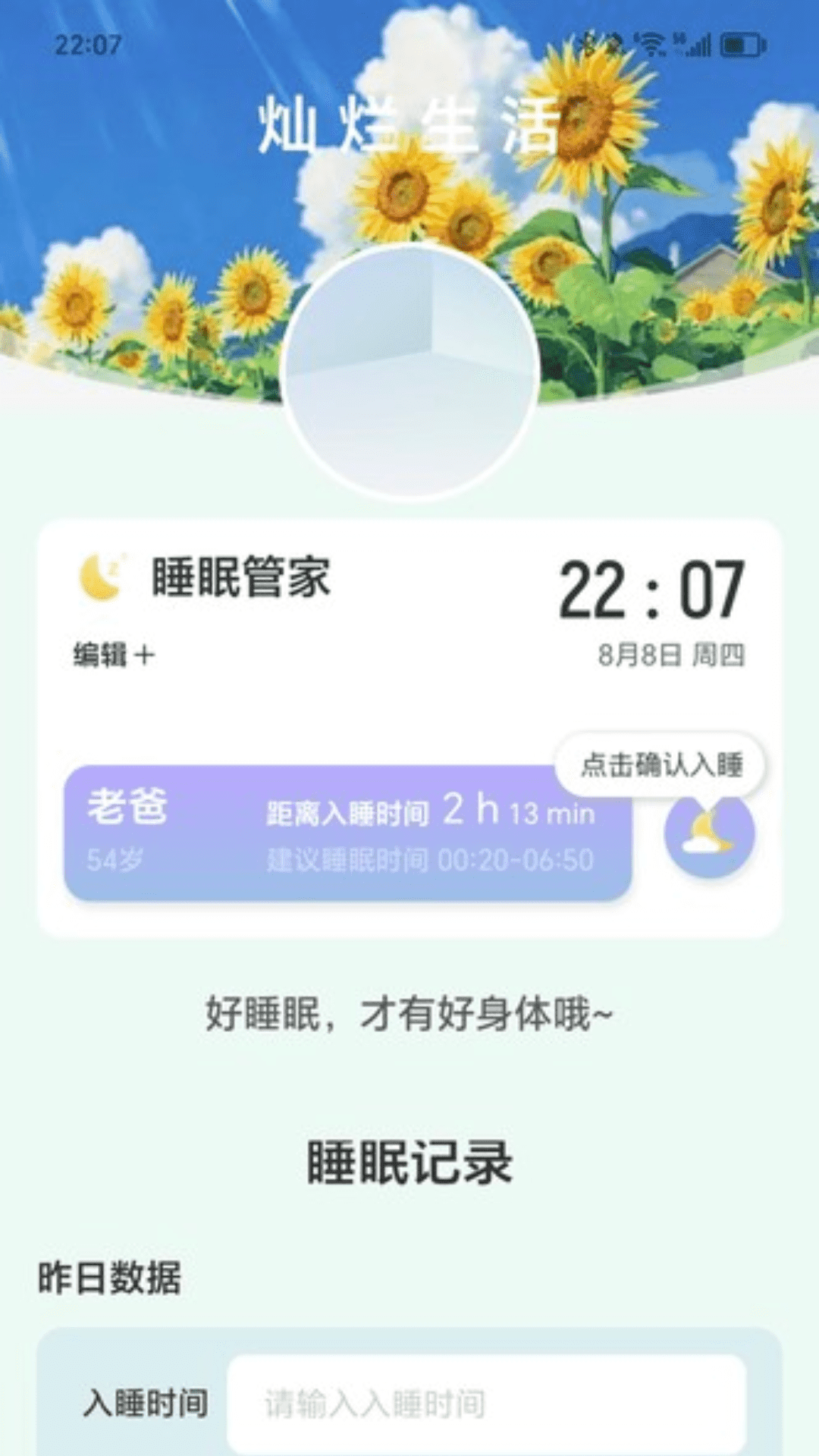 4. 睡眠管理:优质的睡眠是开启美好一天的前提。在灿烂充电的睡眠管理功能中,您能够记录每天的入睡时间和睡眠时长。通过相关数据的展示,您可以了解自己的睡眠状况,进而提升健康水平。