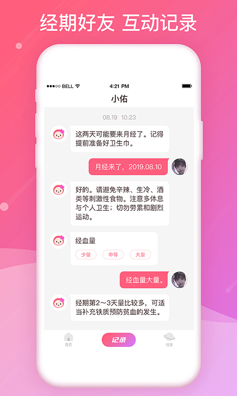 互动式记录经期事项,经期记录不再枯燥无聊难以坚持