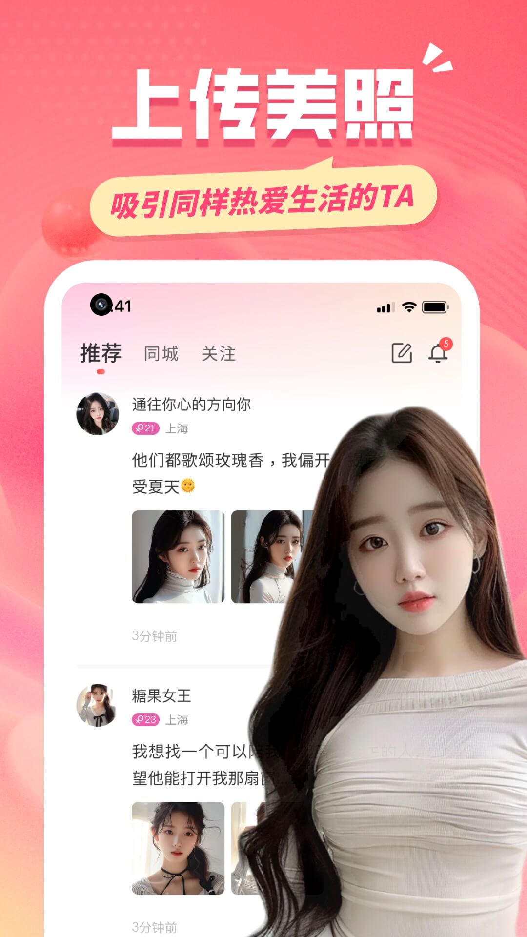 【同城核心特色】500米范围内约见周边单身男女,探寻身边与您灵魂相契的伴侣,为您的脱单之路助力。