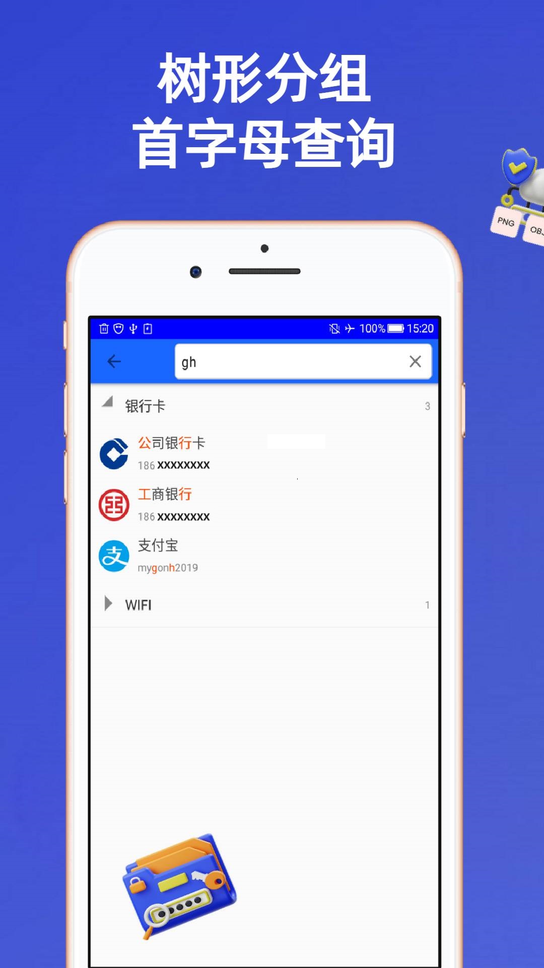- 能够格式化存储各类密码,包括普通账号密码、三方账号密码、图案密码、指纹、私钥等多种类型的密码。