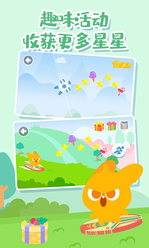 哇,飞起来啦!这个项目可是在考验宝宝的反应速度呢。宝宝们不仅要让滑板飞得更高去获取小星星,还要小心地躲避各种各样的障碍物哦!