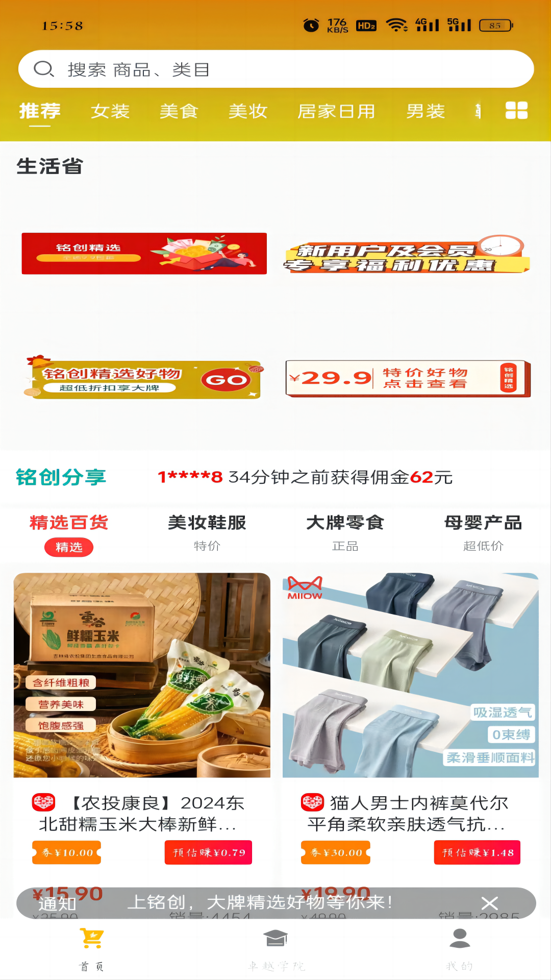 铭创优选是国内首屈一指的全场景导购平台,它将重心放在购物返利、优惠券发放以及生活优惠等方面。铭创优选已经和国内的400多家商城平台开展合作,同时与超过5万家商户携手,其业务范围更是覆盖了数量多达百万的线下门店。无论是购物、旅行,还是外卖、电影票务,亦或是加油、学习、用车等消费场景,都被囊括其中。在这里,你可以一站式满足吃喝玩乐购的需求,既节省金钱又节约时间。