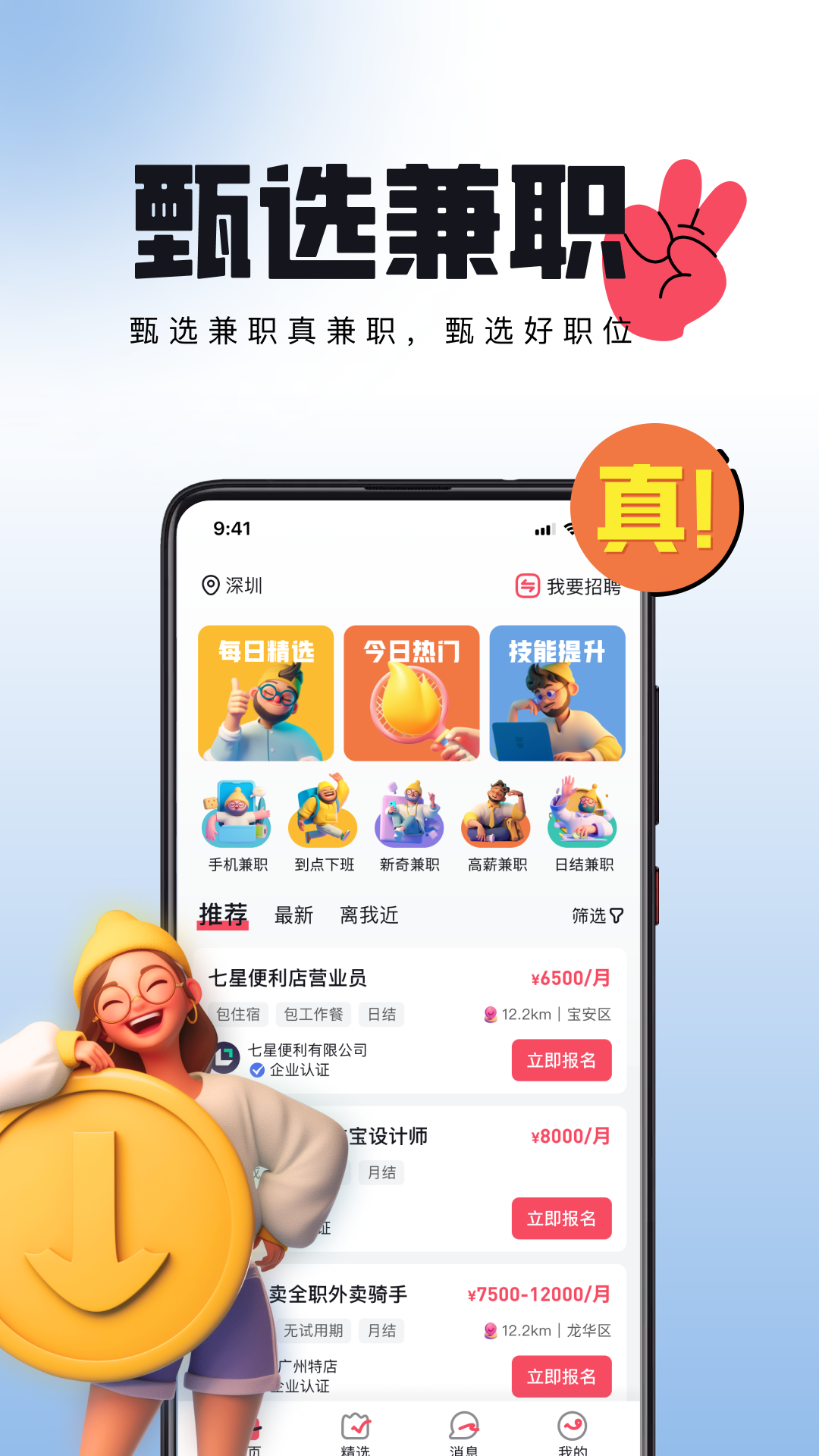 甄选兼职是真实可靠的正规兼职挣钱平台,轻松兼职结算提现快。