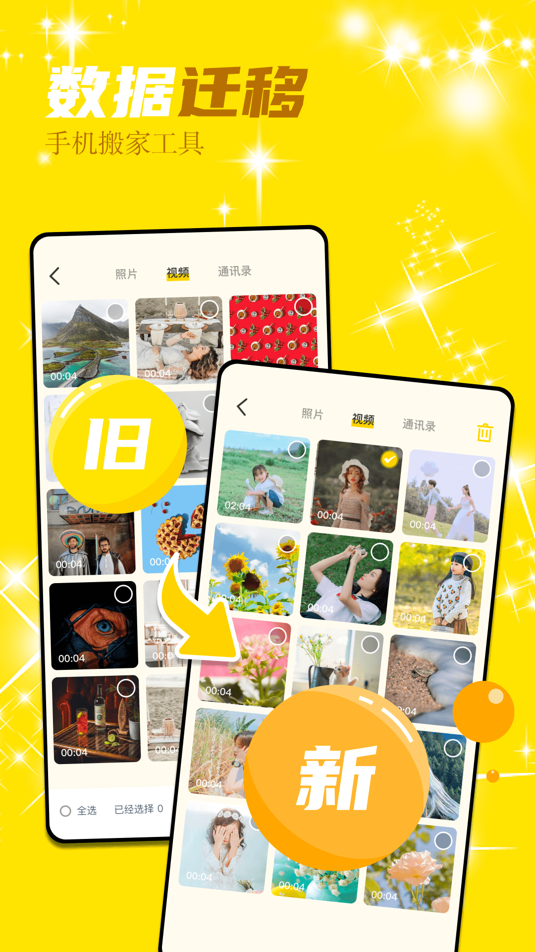 - 简单便捷:通讯录联系人、照片、视频等,都能一键传输,操作简单,轻松上手。