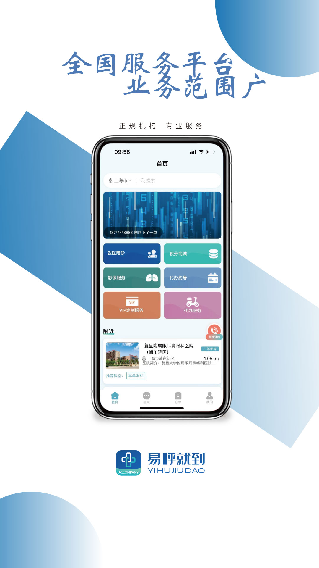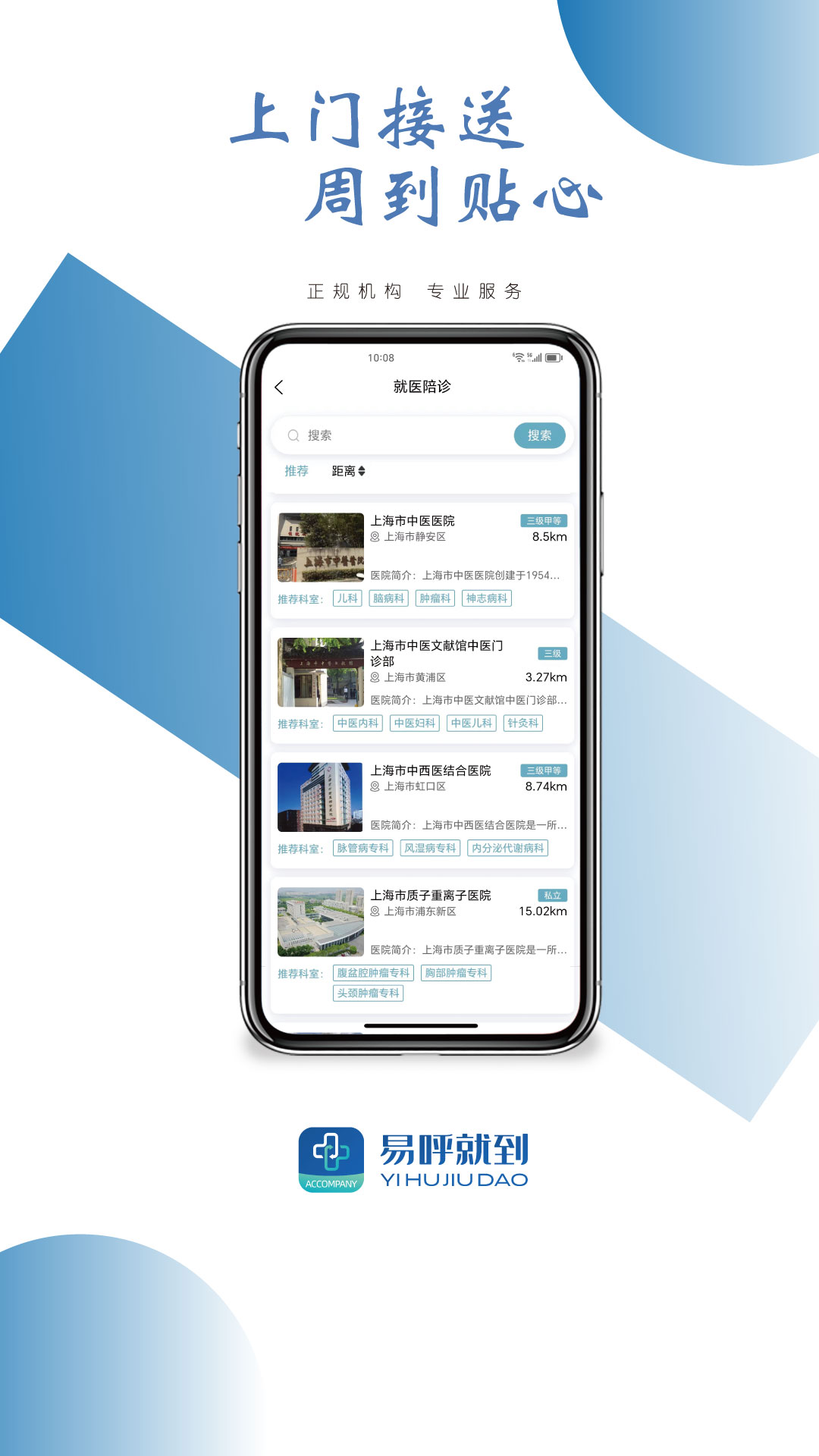 “易呼就到”是主菜单(上海)网络科技有限公司旗下的一个健康服务平台。利用互联网技术,结合线上线下资源,为客户提供全程一对一服务、异地一站式陪诊、VIP定制、健康咨询、代办跑腿、影像检查预约等一系列专业服务。