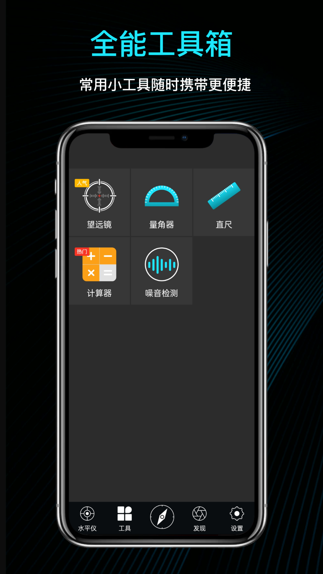 它拥有精美的360°罗盘旋转指南针样式,同时还配备了实用的水平仪测量工具。