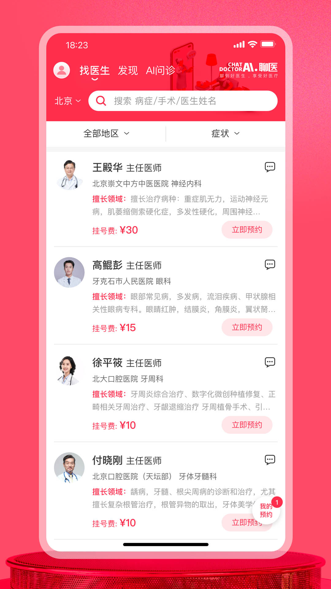 医生预约服务:“聊医”平台和众多经过认证的知名医生展开合作,用户能够便捷地预约到所属专业领域的专家,进而开展线下直接的面诊交流。