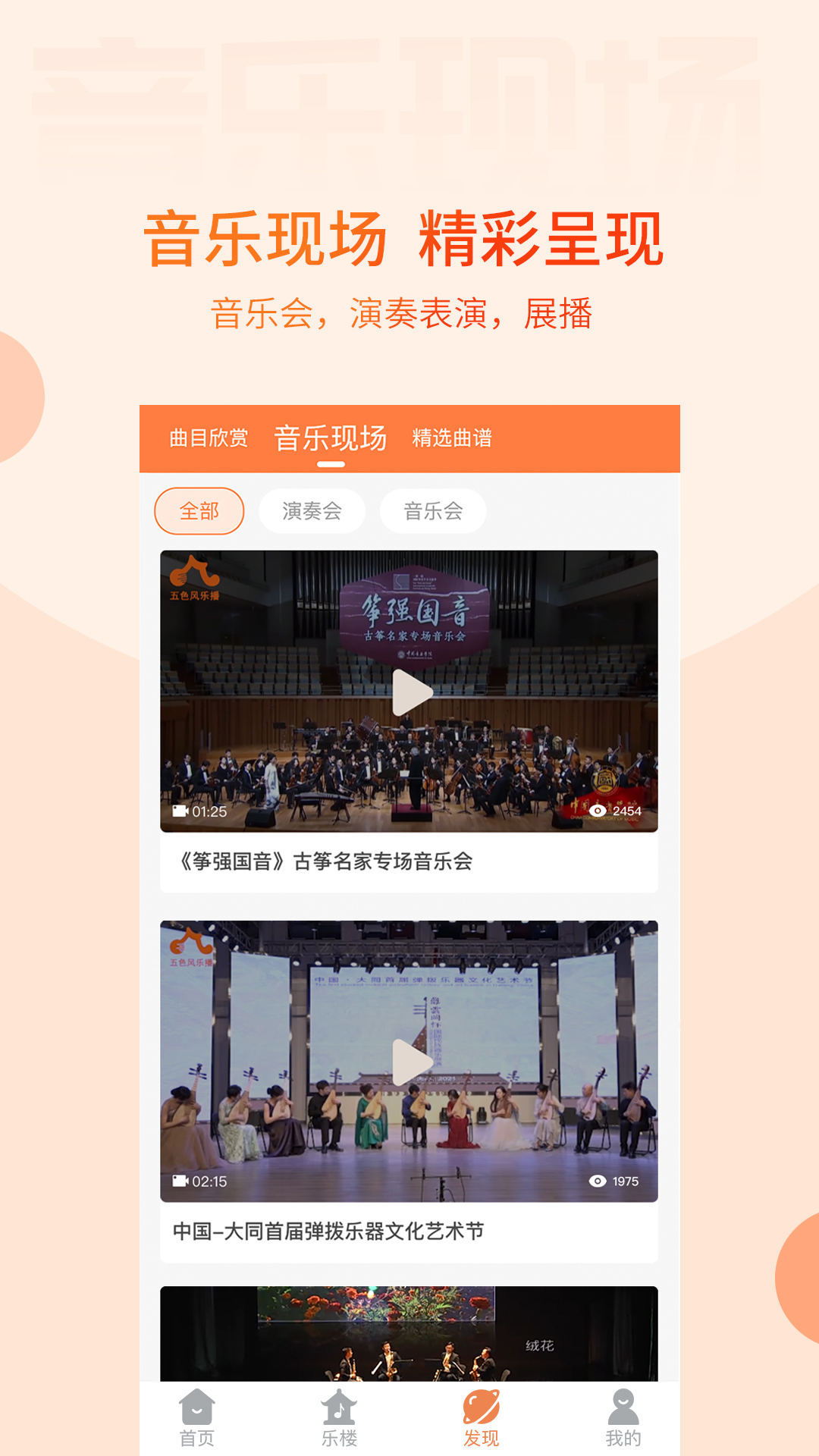 每一场音乐现场活动都精彩纷呈,无论是音乐会、音乐讲座、音乐赛事,还是演奏表演,都能让你仿若身临其境般地感受到音乐那无穷的魅力。