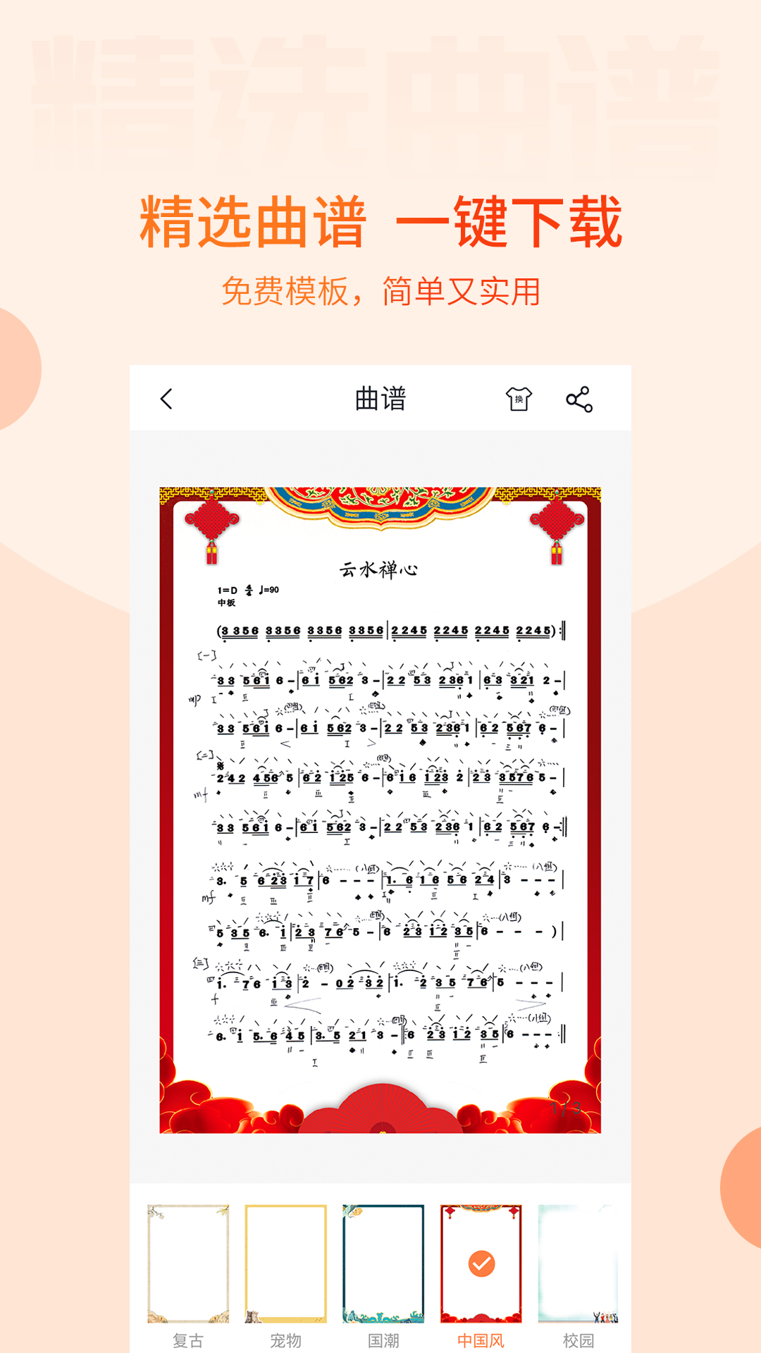 这里的每一个曲谱都十分精美,你可以到曲谱库中查找并下载。而且还有免费且实用的曲谱模板供你选择。