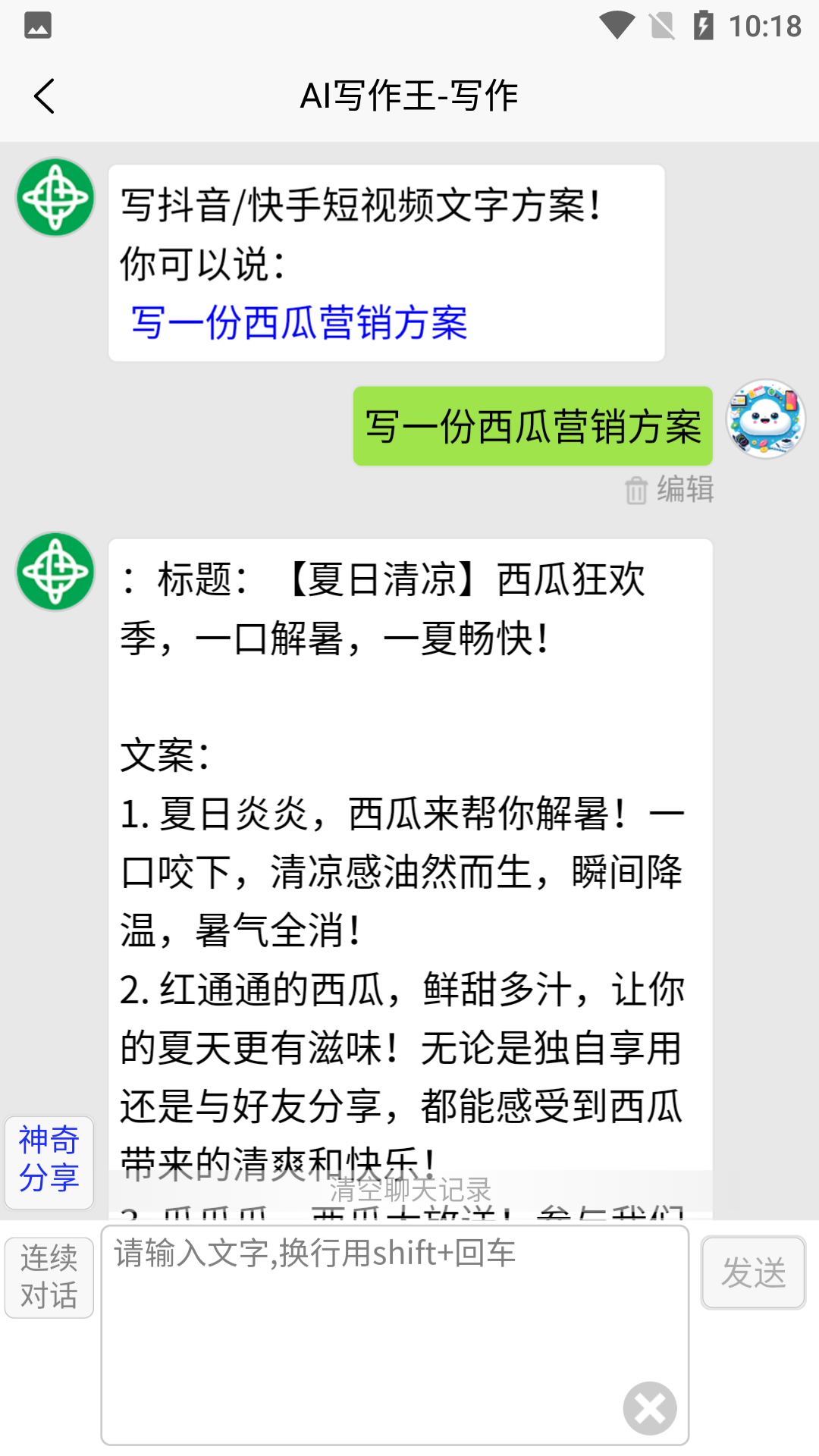 AI写作王是一款集写作、绘图、聊天、问答、翻译多种功能于一身的AI智能应用。不管您是渴望获得灵感启发,还是需要进行语言翻译工作,AI写作王都能够助力您迅速达成任务。借助其智能问答功能,您能随时向AI提问并得到答案。并且,AI写作王具备绘图功能,这使得您可以非常直观地呈现自己的想法。不管是在写作创作领域,还是在语言交流方面,AI写作王都会是您身旁十分得力的助手。