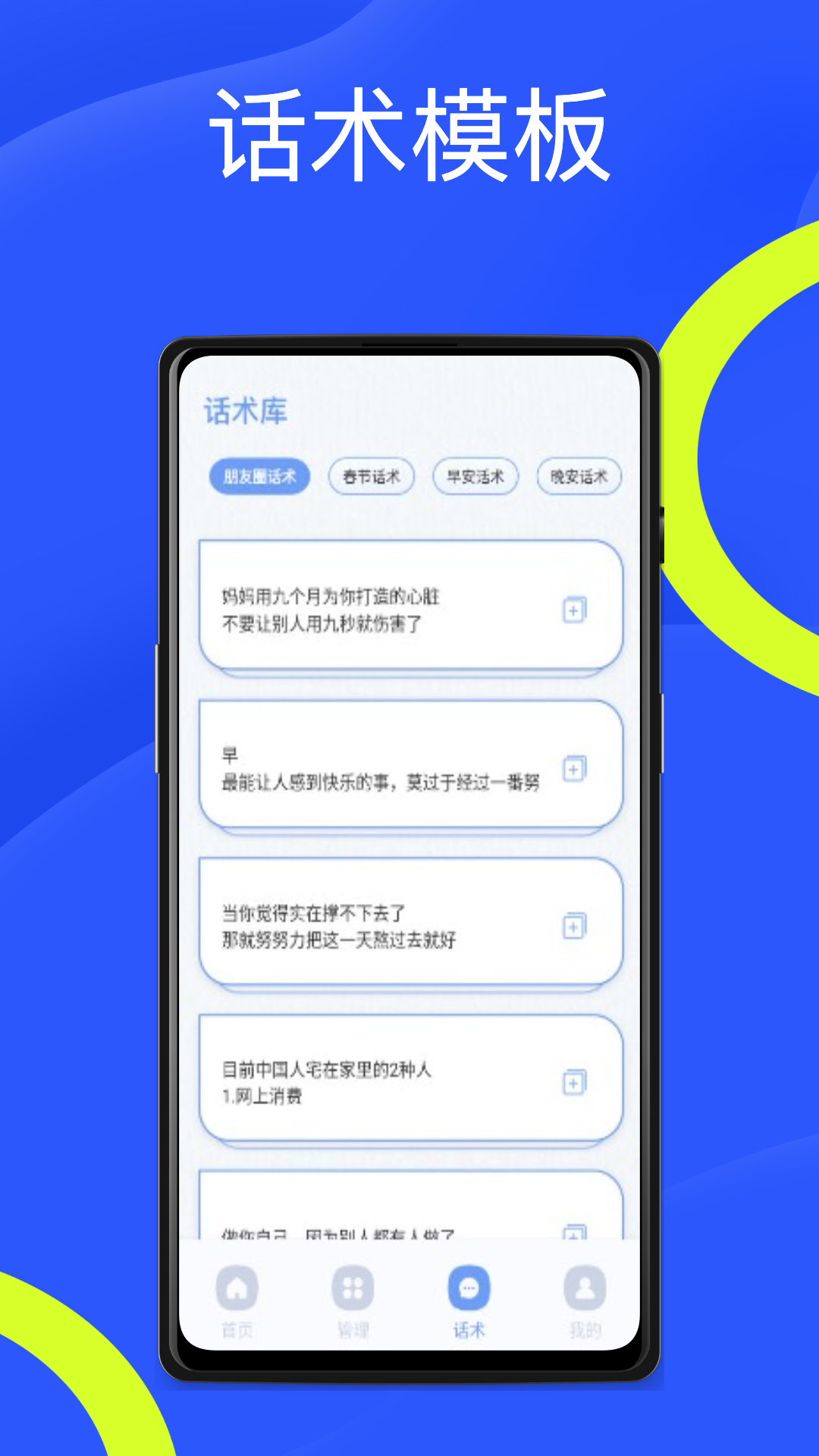 【海量话术】提供针对不同主题的话术教学内容,助力您迅速开启话题,与对方快速熟悉起来。