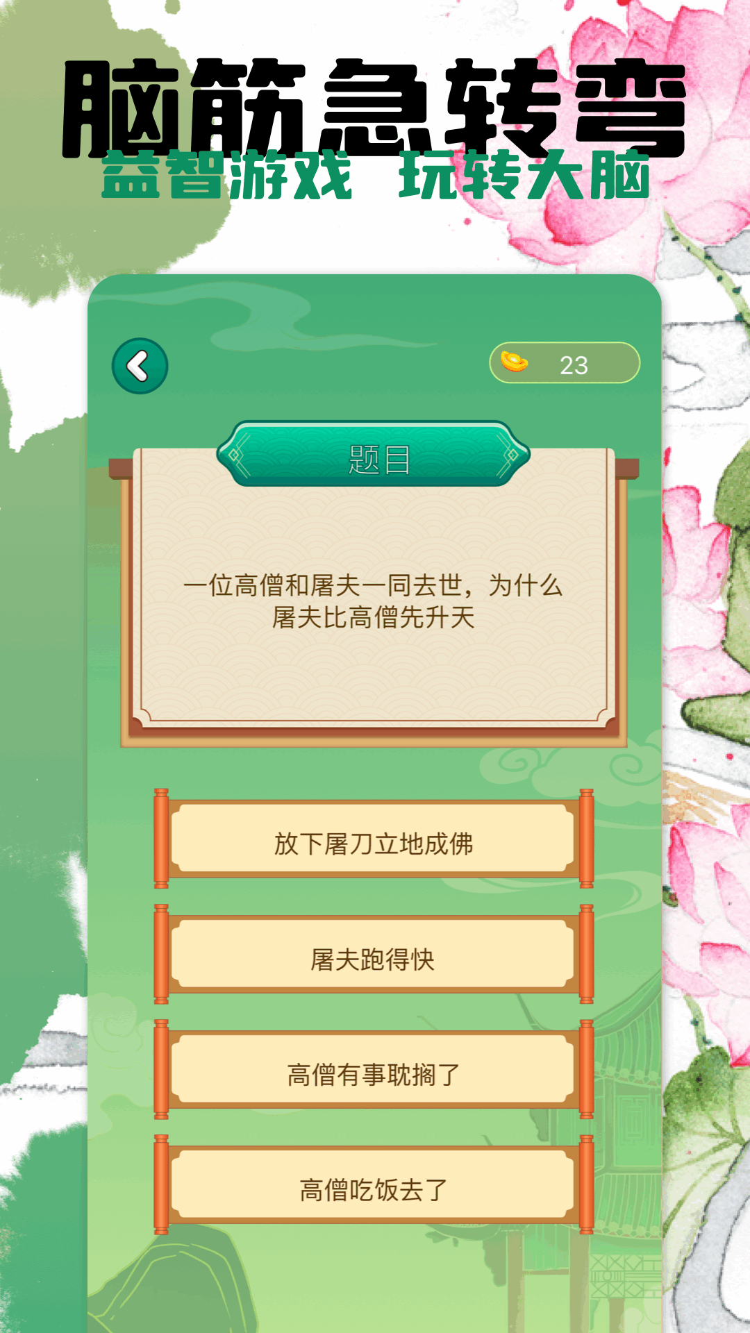 它的界面设计十分简洁明了,让人一进入游戏就能迅速了解游戏内容。游戏中的内容相当丰富,玩法也是多种多样的,玩家在游戏过程中会感受到十足的烧脑体验。游戏里还充满了各种无厘头的元素,这些元素组合在一起会产生一种独特的魅力,一旦你开始玩这个游戏,就一定会对它爱不释手的。