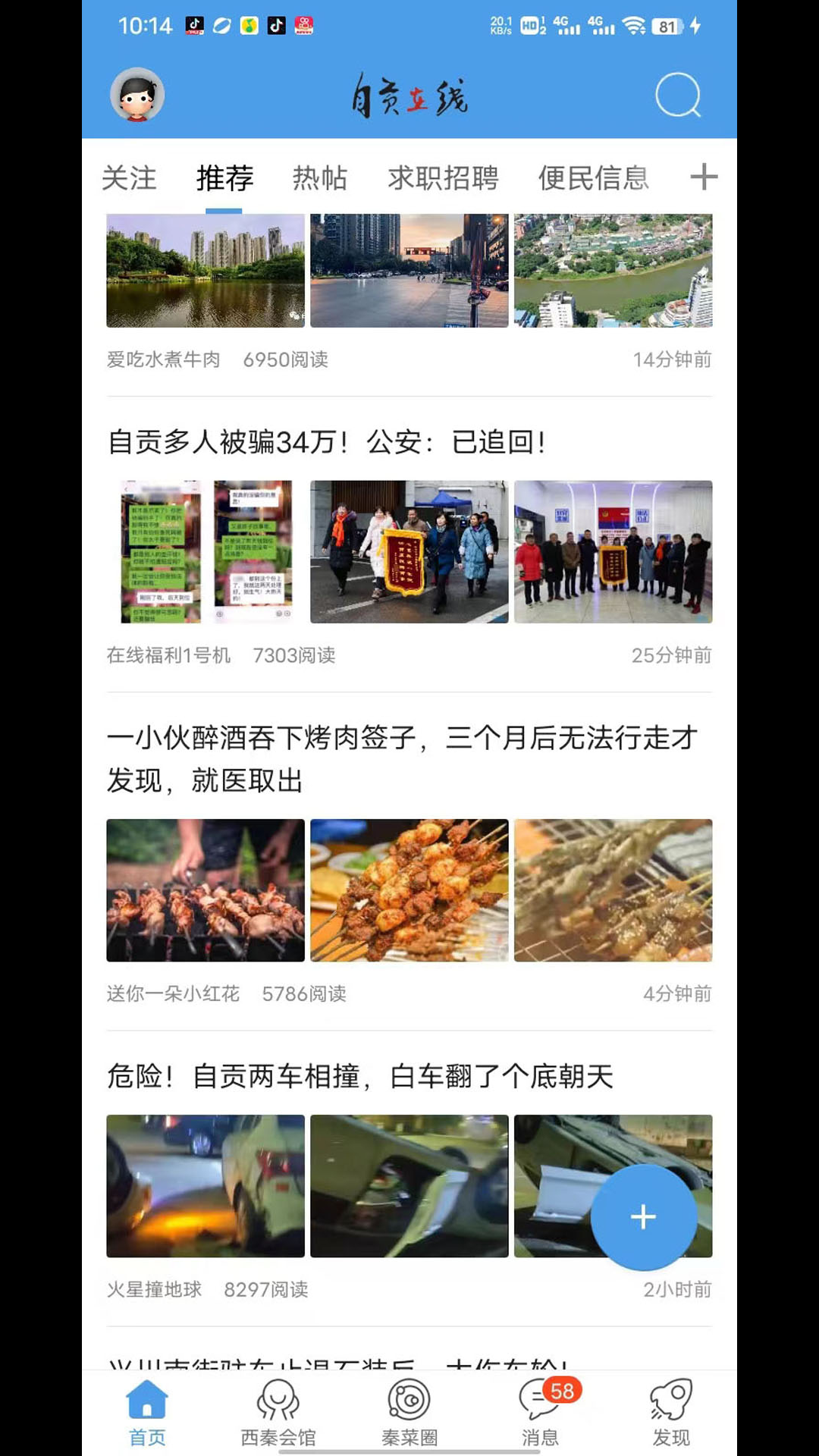 自贡在线是自贡本地社区 APP, 提供自贡当地相关的民生信息, 网友热点话题, 生活资讯等. 可通过自贡在线与网友进行互动, 可发布如旅行日记等记录生活美好的帖子等