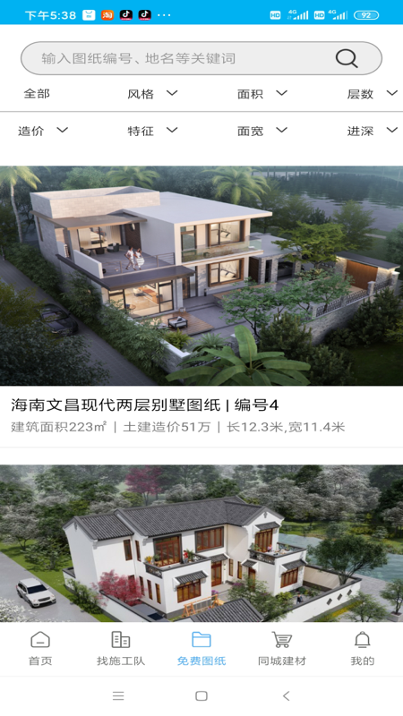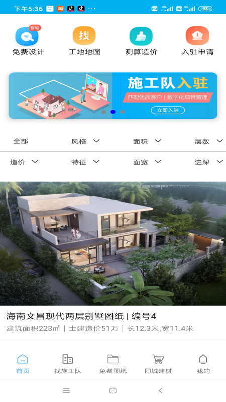 《乡住》app是乡村住宅技术服务平台,为客户提供免费建房图纸,就近调配施工队和同城建材服务。