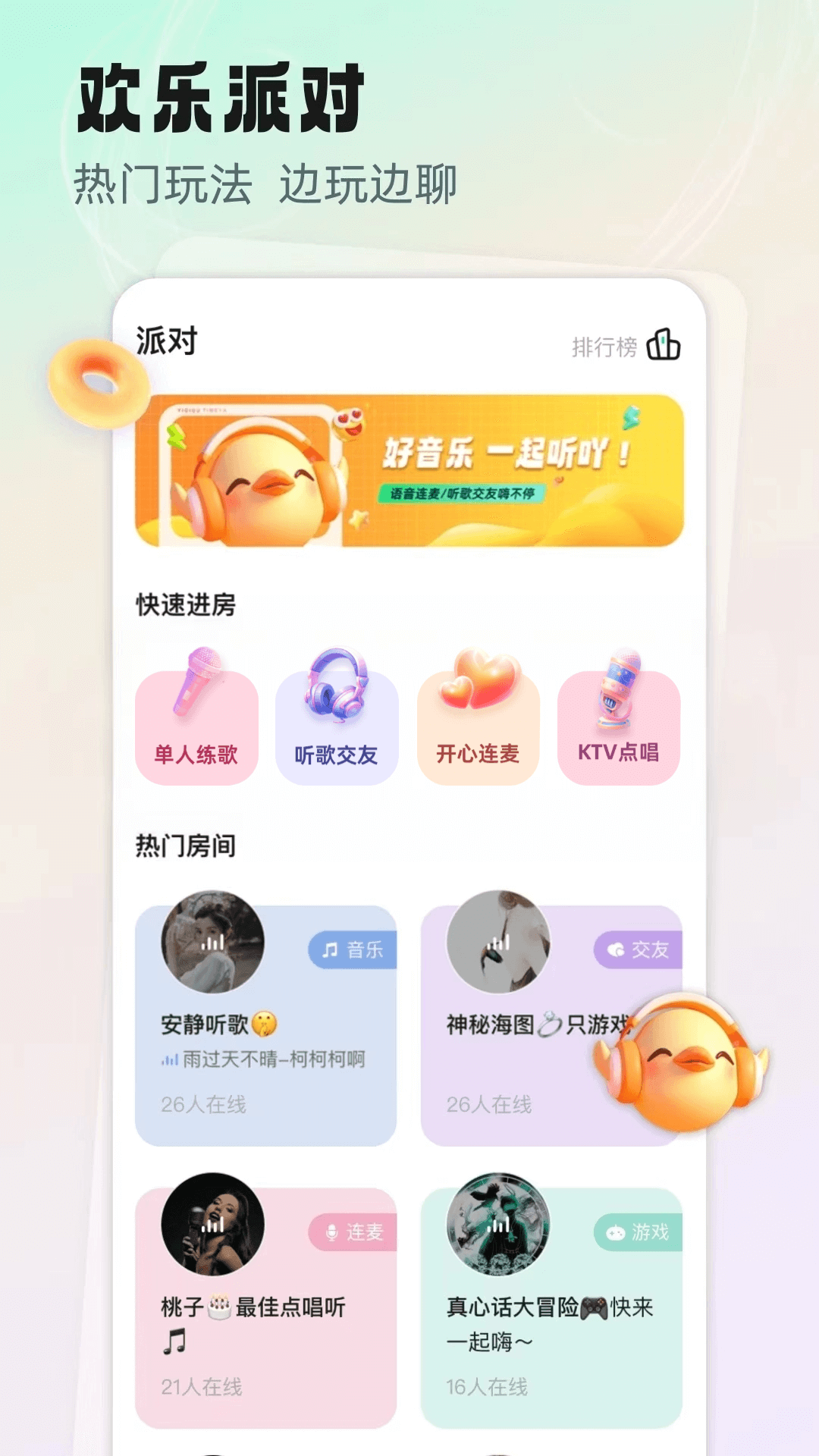 欢迎来到“听吖”,这是一款集音乐、交友和语音聊天于一身的全新社交应用。在“听吖”,您不但能够畅享高品质的在线音乐,而且可以结交到志同道合的朋友,拓宽自己的生活圈。