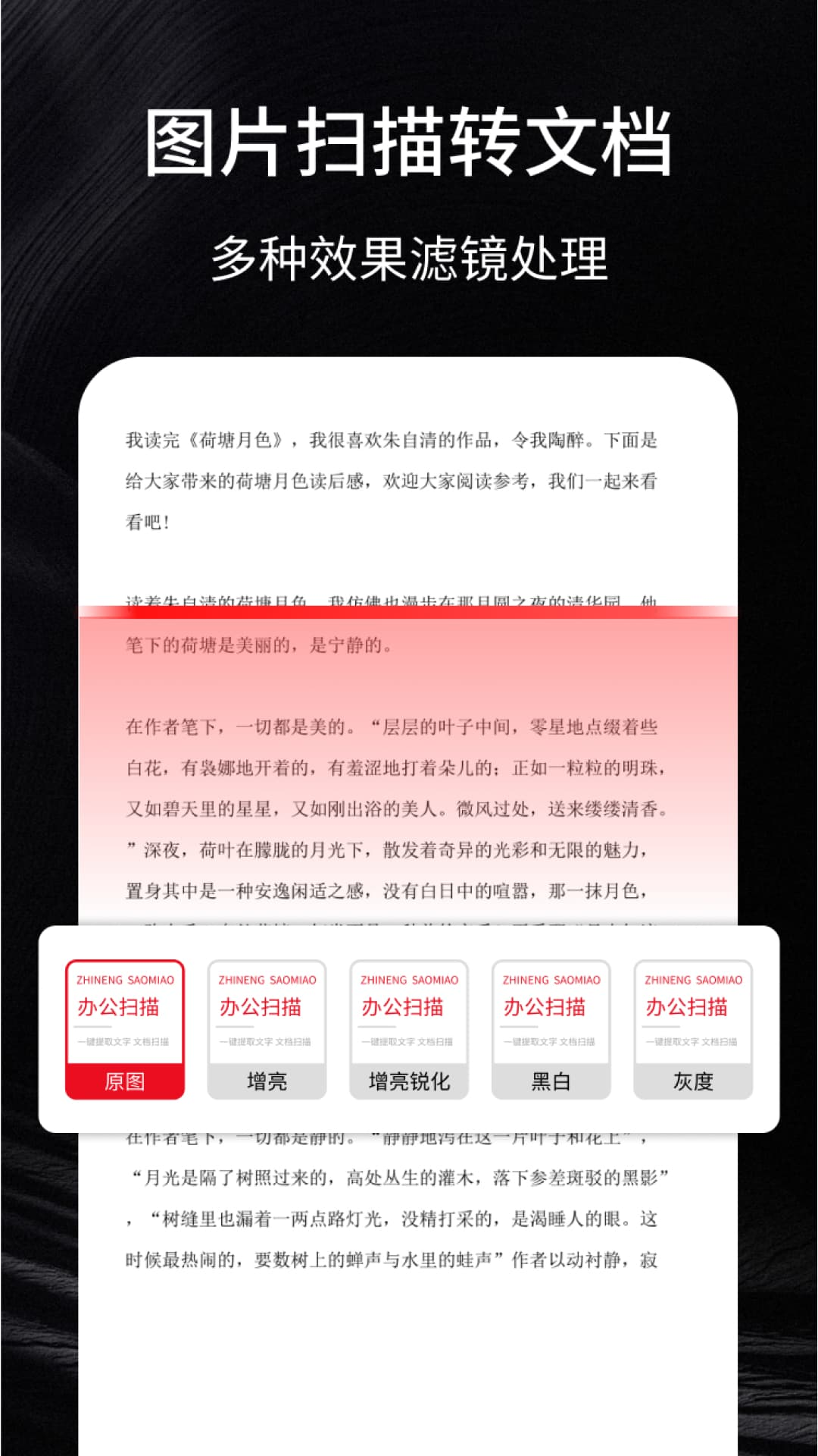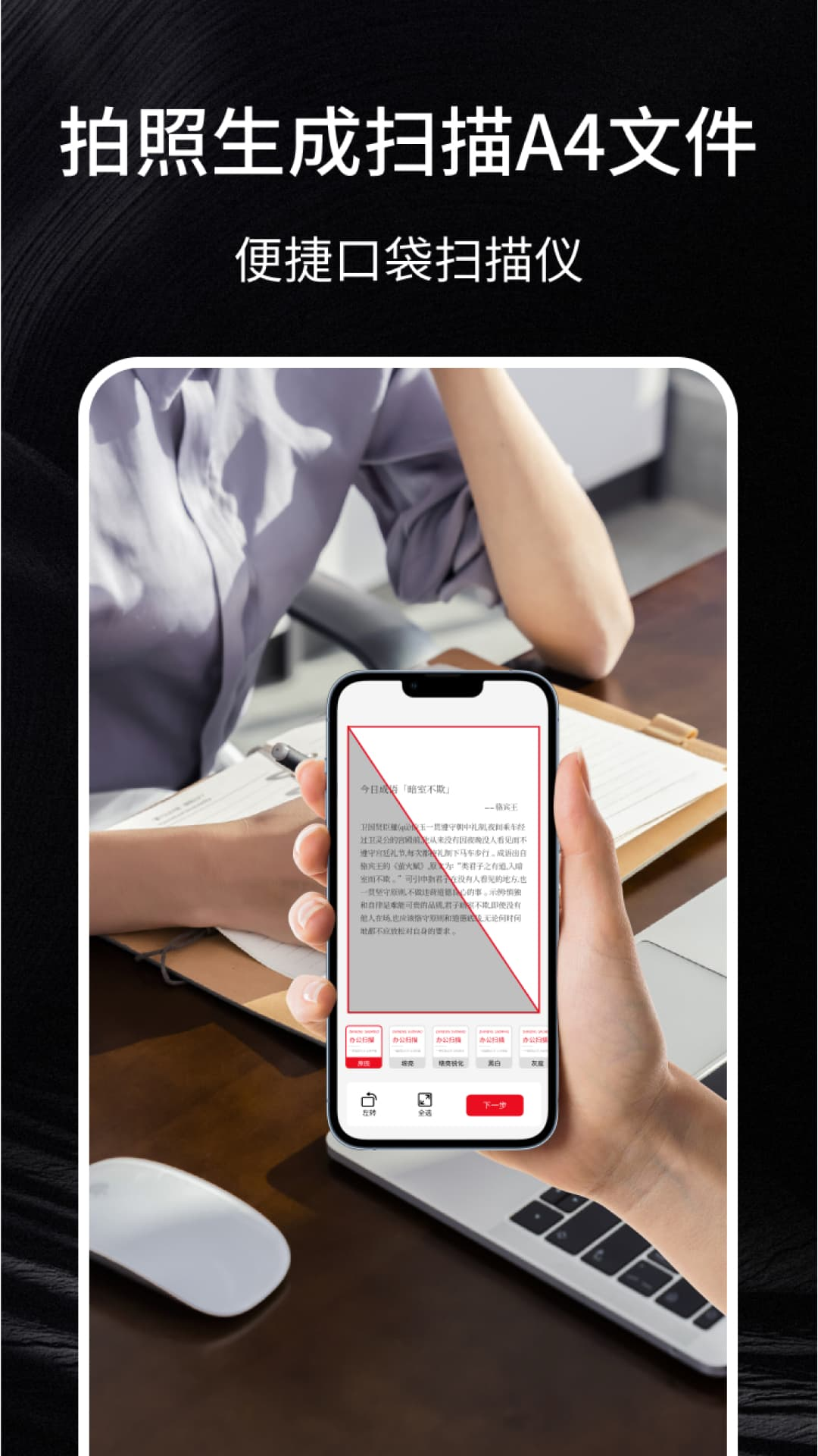 办公扫描王是一款功能强大实用的手机扫描仪,一款属于你的口袋扫描仪!这是一款能扫描纸质文件、瞬间转化为电子版的软件应用!有了它,轻松扫描、签字、粘贴和分享高清PDF 或 JPEG 文档。享受高效实用的体验扫描文件、合同、笔记、书本、收据和其它纸质文件。