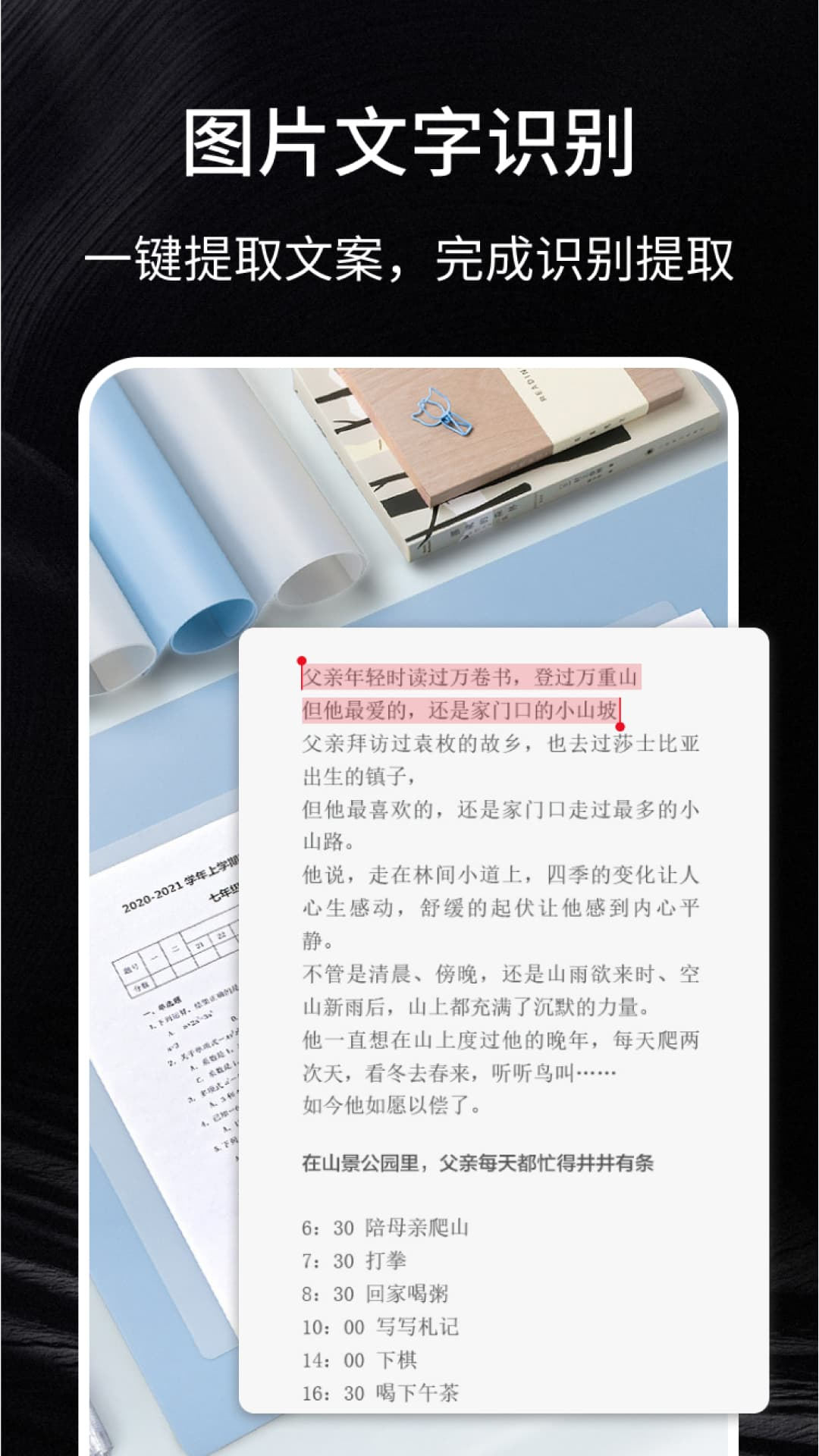 - 从笔记、账单、扫描件等照片中识别提取文本,一键复制使用