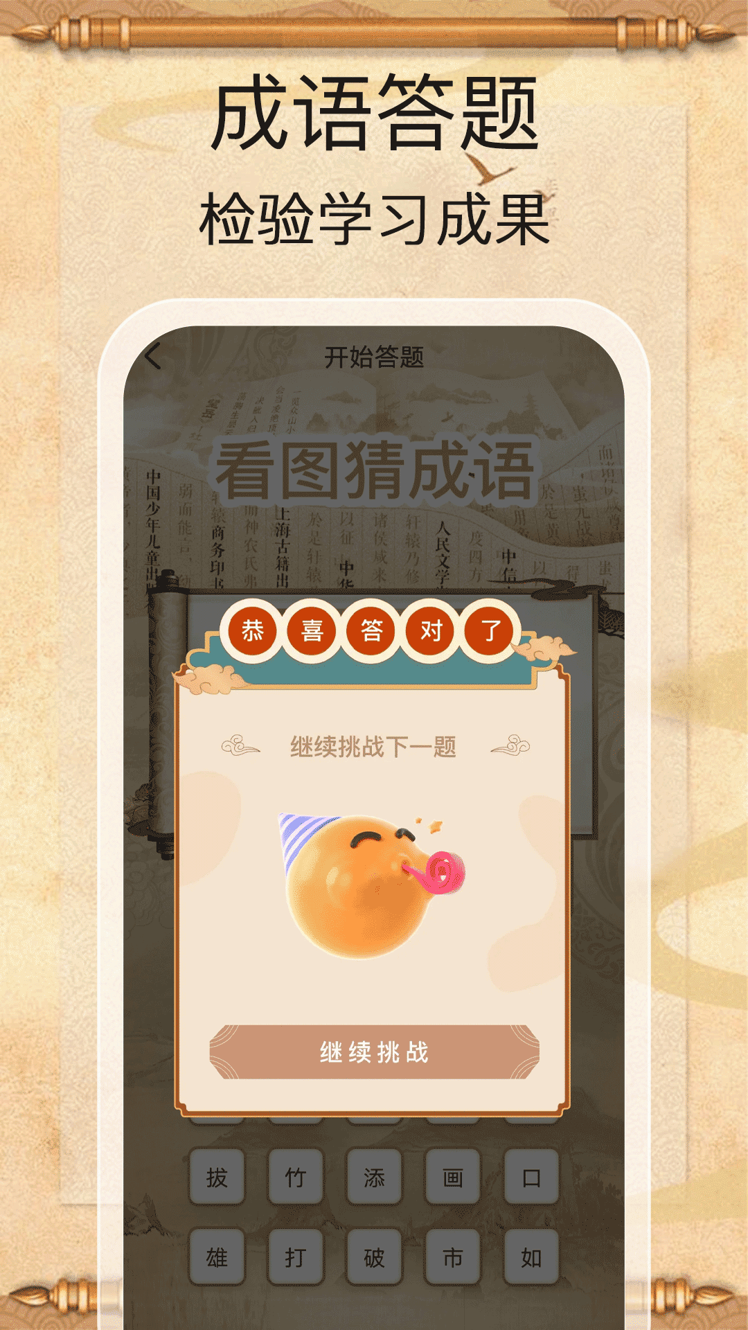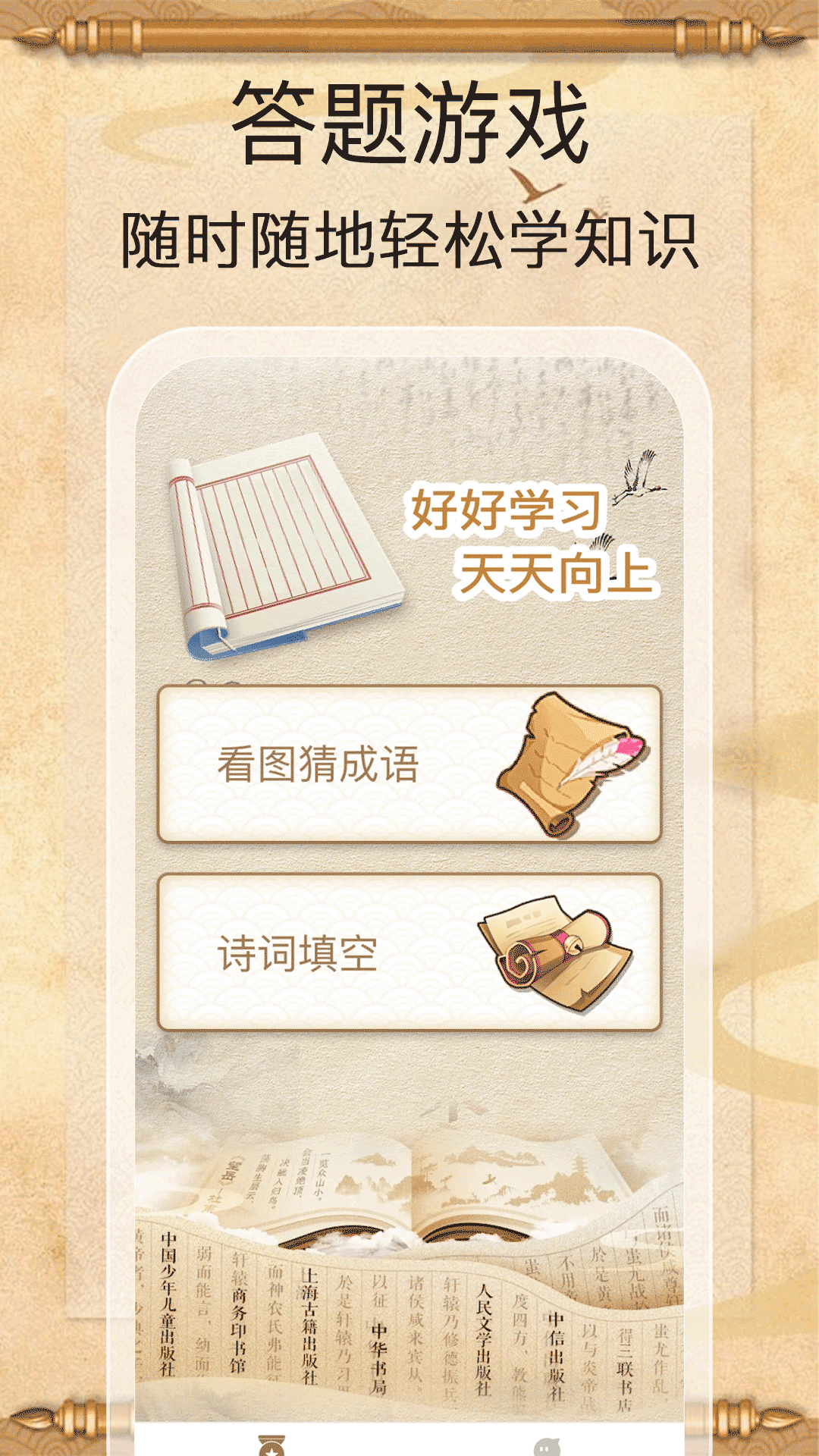 金榜答题王是一款充满趣味与挑战的知识问答应用,让你在答题中增长见识、收获乐趣,快来开启知识挑战之旅吧。看图猜成语:根据所看到的图片,分析其中的关键信息和隐含意义,然后猜出对应的成语。 诗词填空:给出一些经典诗词的句子,但其中会有部分字词空缺,需要根据自己对诗词的记忆和理解,从给定的选项中选择正确的字词填入空缺处,使句子完整、正确。