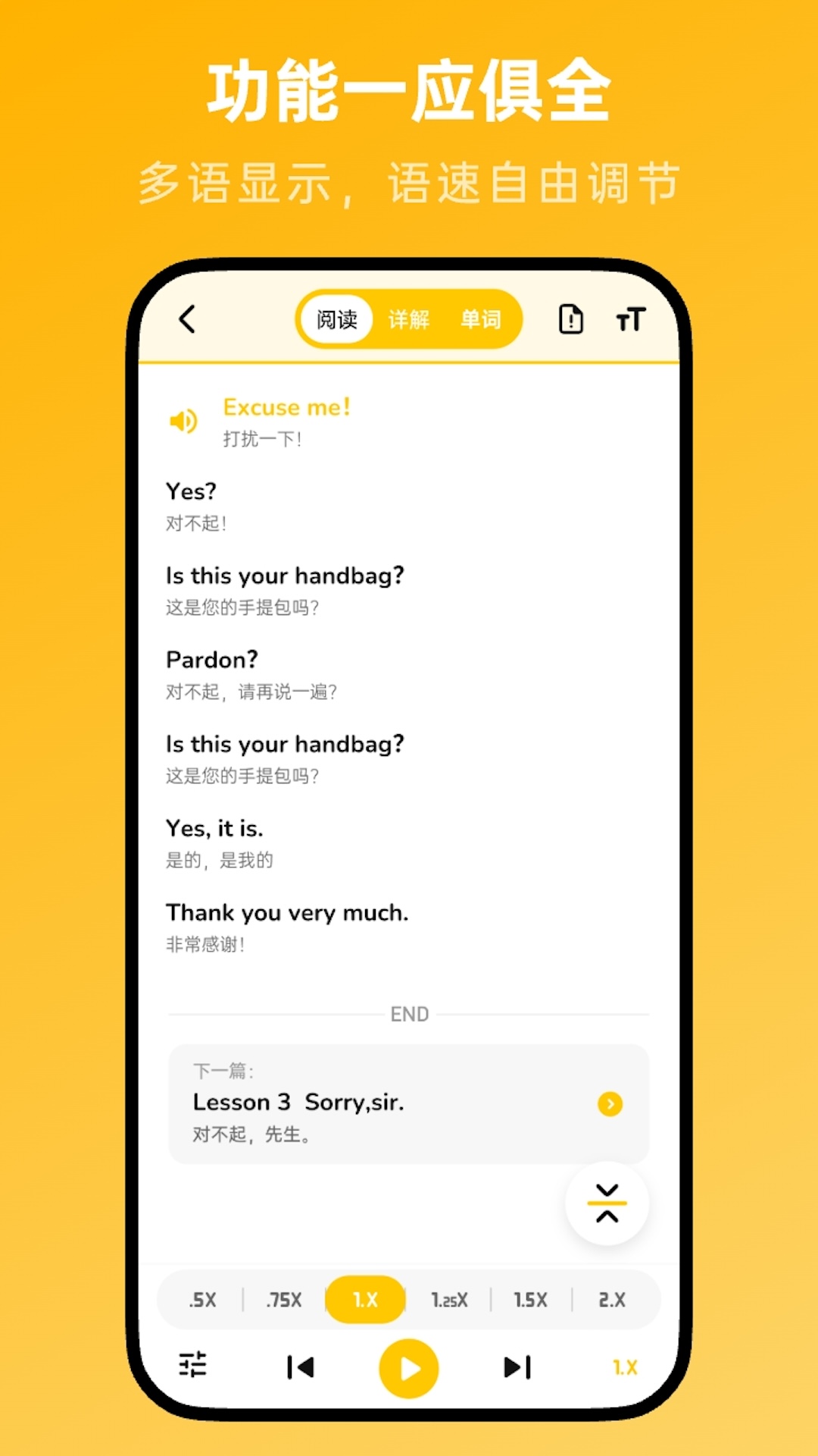 - 自定义播放:您可以自由调整播放的速度与模式,打造个性化的学习体验。