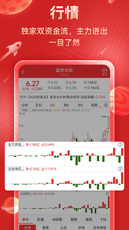 借助AI +大数据技术进行每日金股筛选,像尾盘擒龙、竞价龙头、早盘擒龙等AI选股产品可供任意挑选。在个股行情方面,拥有独家的双资金流,主力进出情况清晰可见。