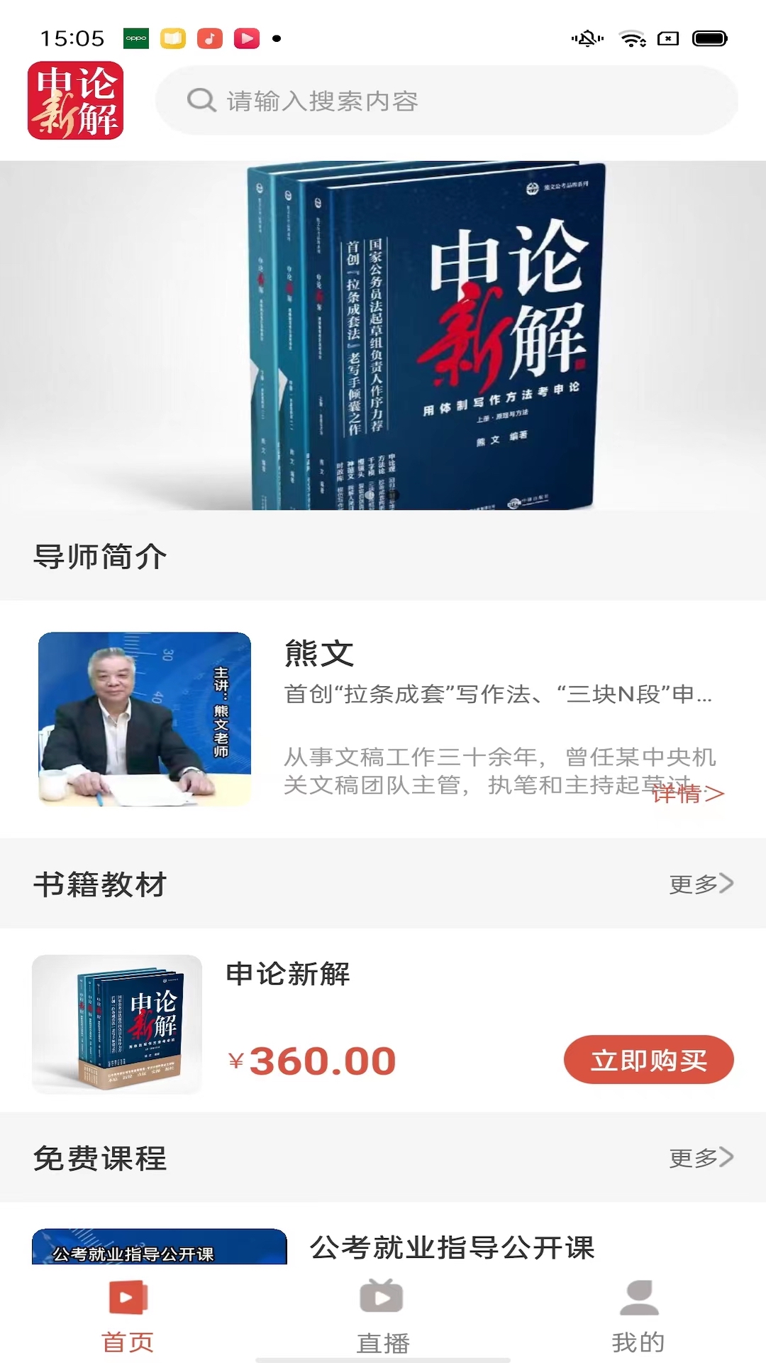 熊文申论App主要用于对熊文老师的《申论新解》进行讲解,有免费公开课程,付费课程和直播课程。用户可以下载收听收看