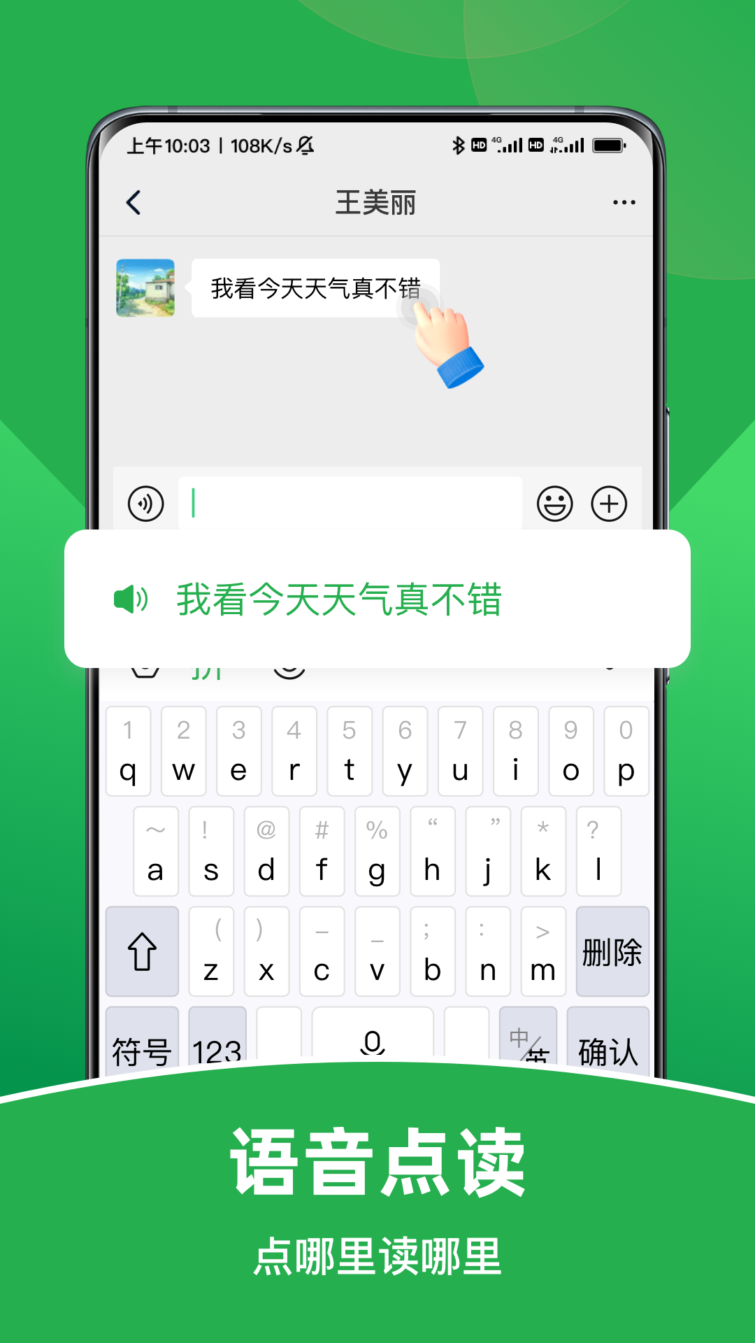 【语音点读】针对收到的文字信息,您点到哪里就会读到哪里。
