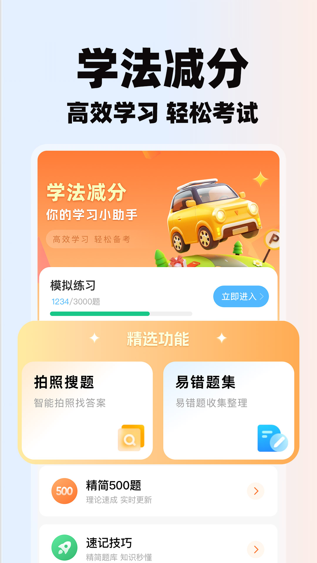 学法减分助理一款致力于通过全面的学习资源和智能化的复习工具,帮助您轻松掌握交通法规,有效减少驾照扣分,守护您的驾驶分数。