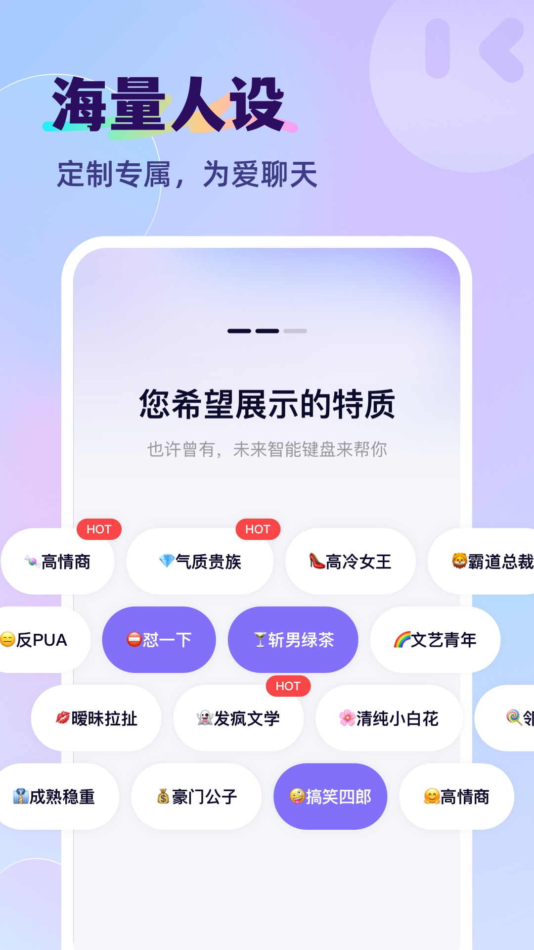 【人设键盘】无需再纠结如何回复,只要复制对话内容,挑选好人设,智能回复便可一键完成。