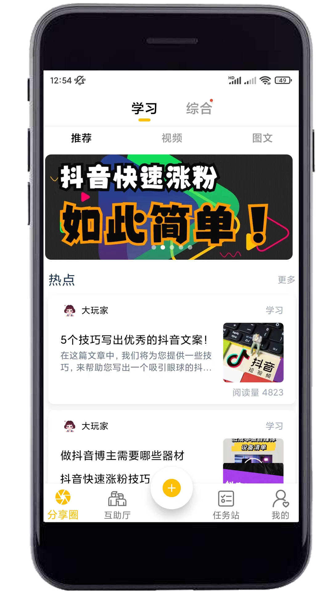 2. 互助厅:为用户的短视频打造一个互帮互助的平台,从而助力用户的抖音短视频获取更可观的流量以及更多的粉丝。