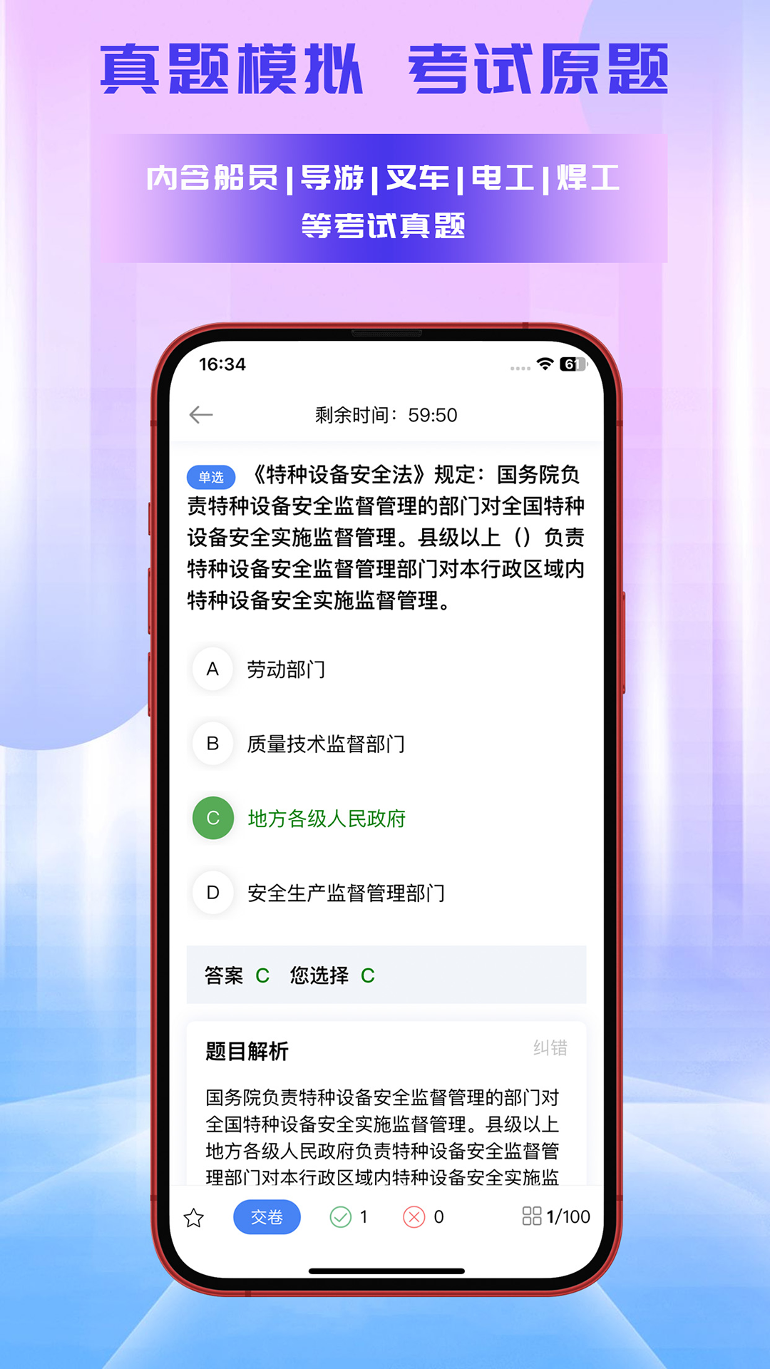 多职业题库:涵盖电工、焊工、叉车、导游、船员等热门职业资格考试的丰富题库。