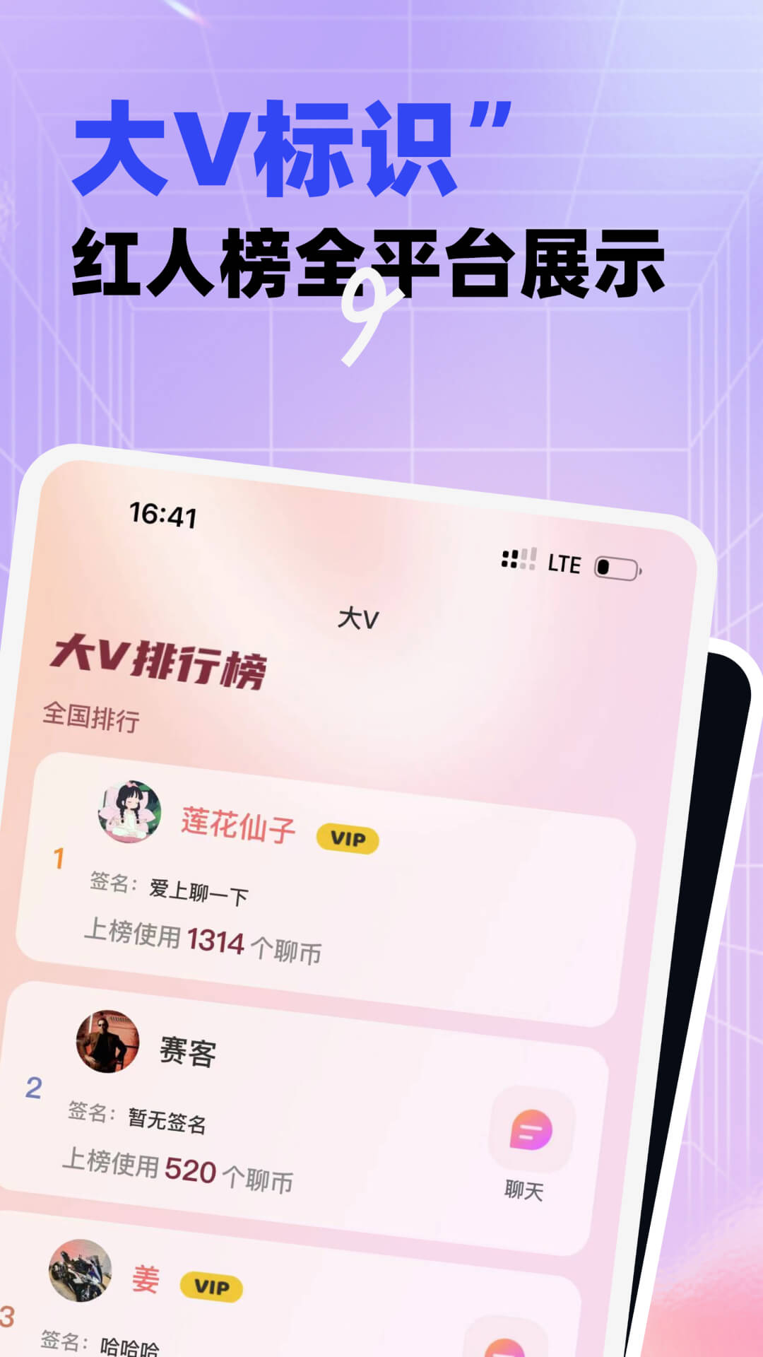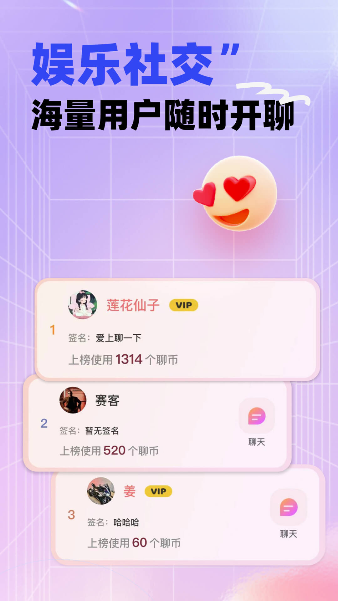 更为有趣的是,聊币还能让您参与到超级刺激的聊天竞赛和排行榜活动当中。您可以与其他用户一争高下,比一比谁能积攒更多的聊币,从而成为聊一下APP中的聊天达人。