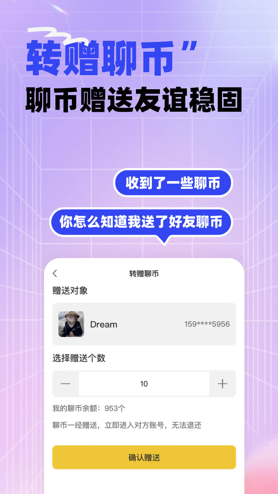 一旦拥有聊币,您就能解锁更多专属功能啦,而且还有各种惊喜等待着您。