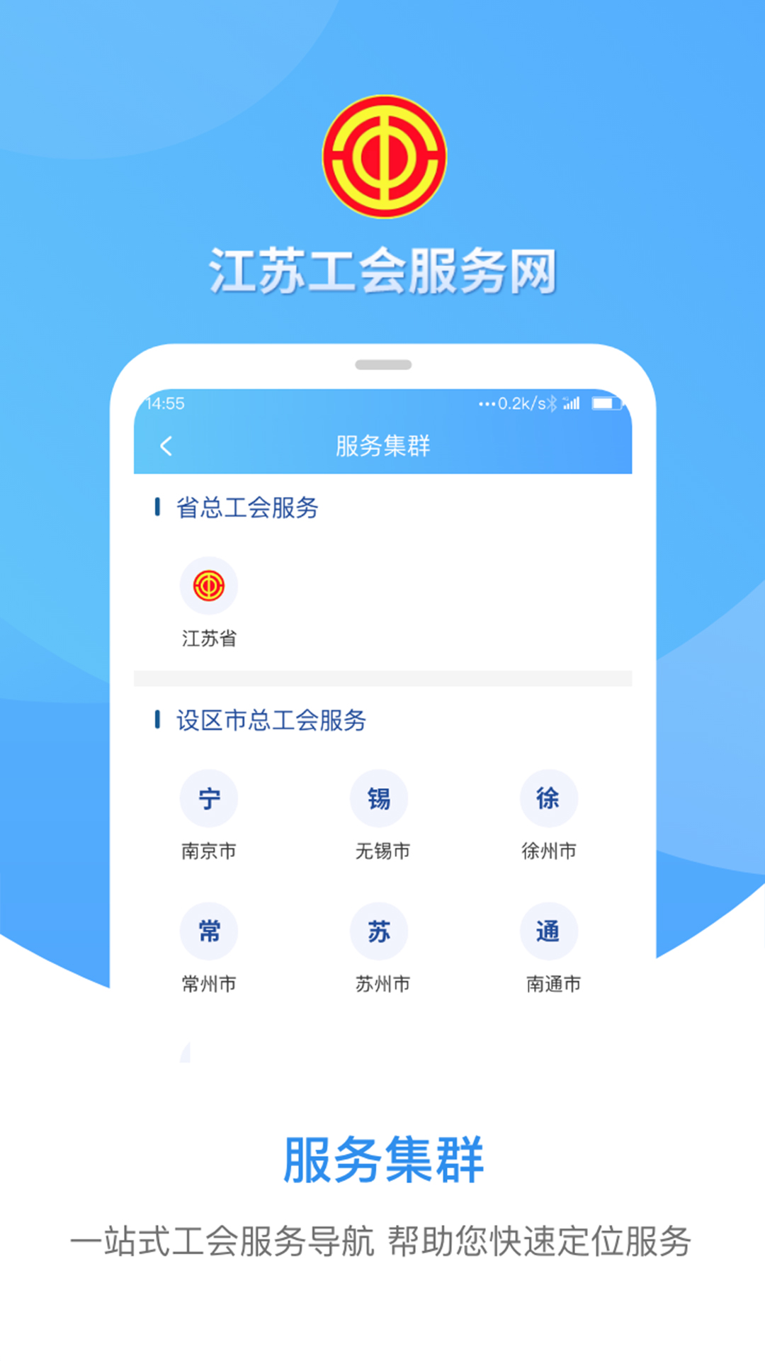 情牵职工,竭诚服务。“江苏工会”APP紧密围绕全省工会工作的整体布局,秉持服务职工的理念,为全省职工送上便捷高效的工会服务。这里汇聚了建会入会、劳模服务、法律服务、工会学院、职工书屋、就业服务等诸多服务内容,将各级工会的服务资源全面且有效地整合起来,实现一证在手即可通行无阻、一站式申办各项事务、一个网络平台完成查询,提供省、市、县三级工会联动的服务。