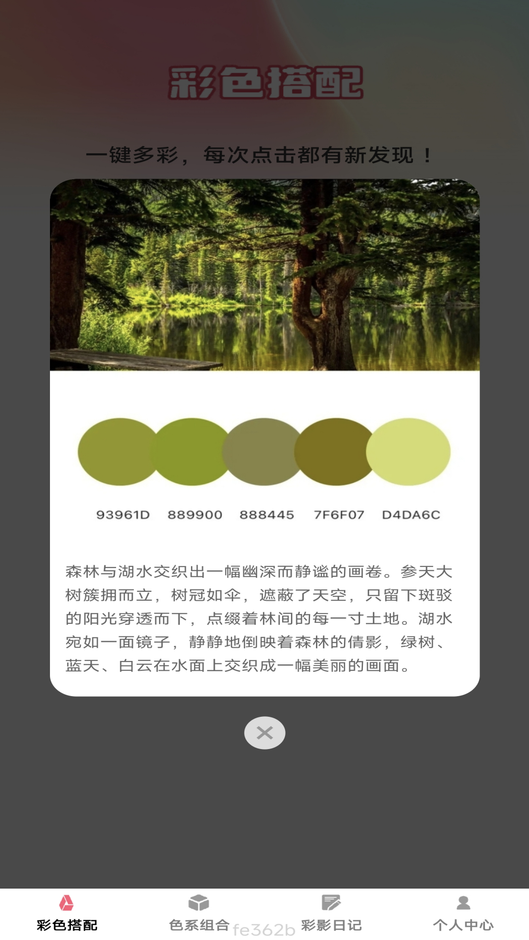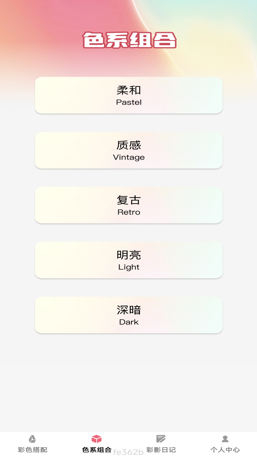 一款专为色彩爱好者与美学爱好者打造的智能应用,提供丰富的色彩搭配推荐、色系组合建议与唯美时刻记录,帮助您尽情展示个人风采。彩色搭配功能通过随机色彩组合,激发您的创意灵感;色系组合功能涵盖柔和、复古、质感、明亮、深暗等色系,每一分类下均有精心推荐的组合,助您轻松实现美学梦想;彩影日记功能为您提供记录美好时刻的空间,保存您每一个唯美瞬间。