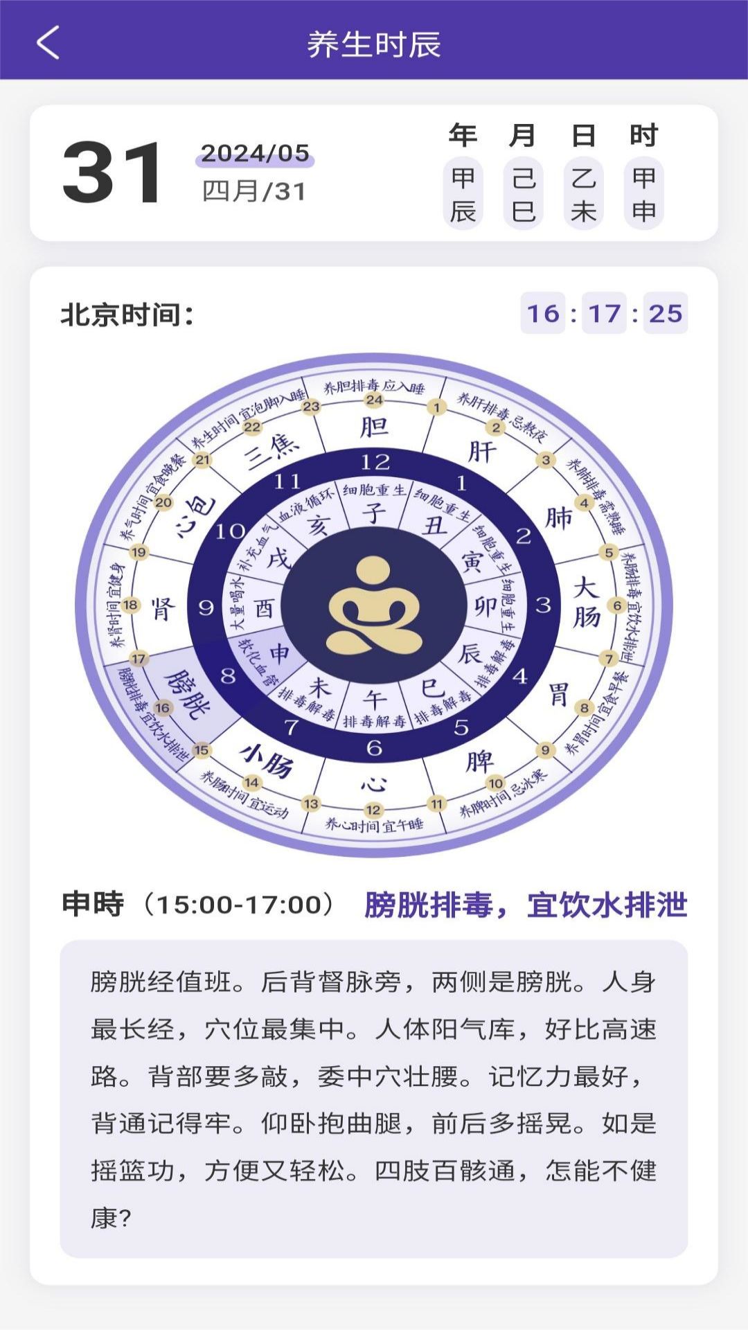 【养生时辰】板块则如同您的健康小管家,会提供每日养生时辰提醒,同时给出精确的养生建议,助力您养成良好的生活习惯,拥抱健康的生活方式。