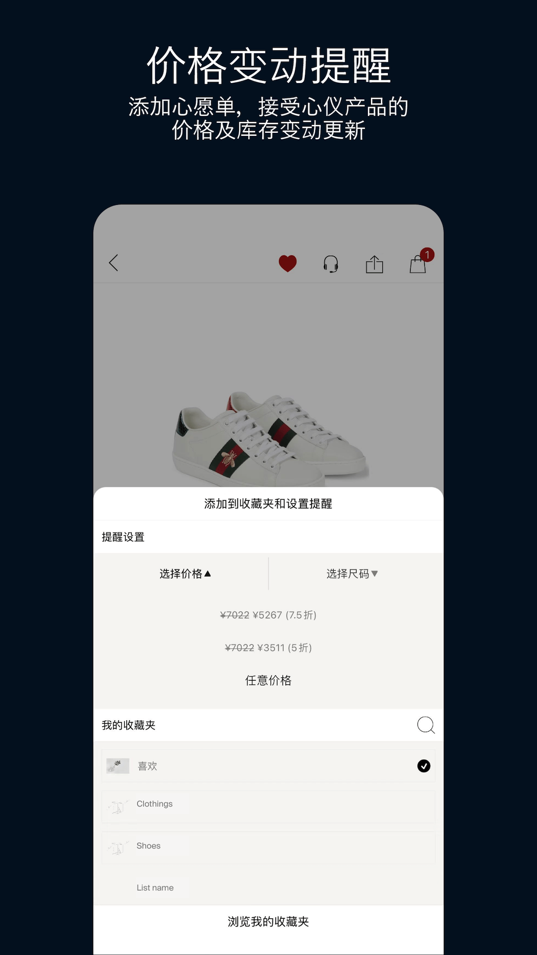 - 为产品和品牌设置提醒,从而实时掌握折扣信息更新、新货上架、库存恢复、少量库存等情况。