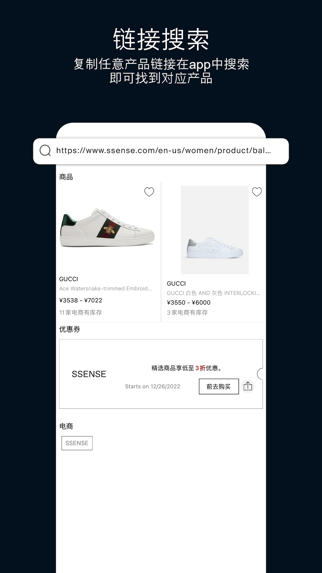 - 可查看众多奢侈品电商的价格、尺码以及折扣信息。