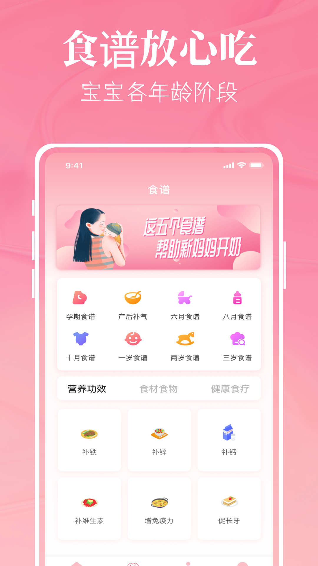 - 营养食谱涵盖孕期、产后、宝宝各年龄段等,吃什么好一查便知不再发愁