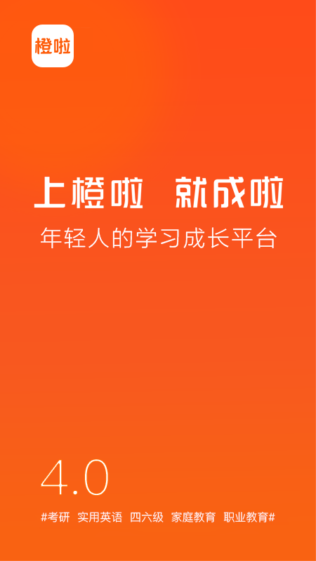 橙啦是一款致力于服务年轻人的高品质学习App。它以大学四六级和考研课程为起点,逐步拓展构建起涵盖实用英语、家庭教育、职业教育等在内的丰富成人教育课程体系,借助优质的直播体验和极为完善的学习辅导服务于每一位学员。