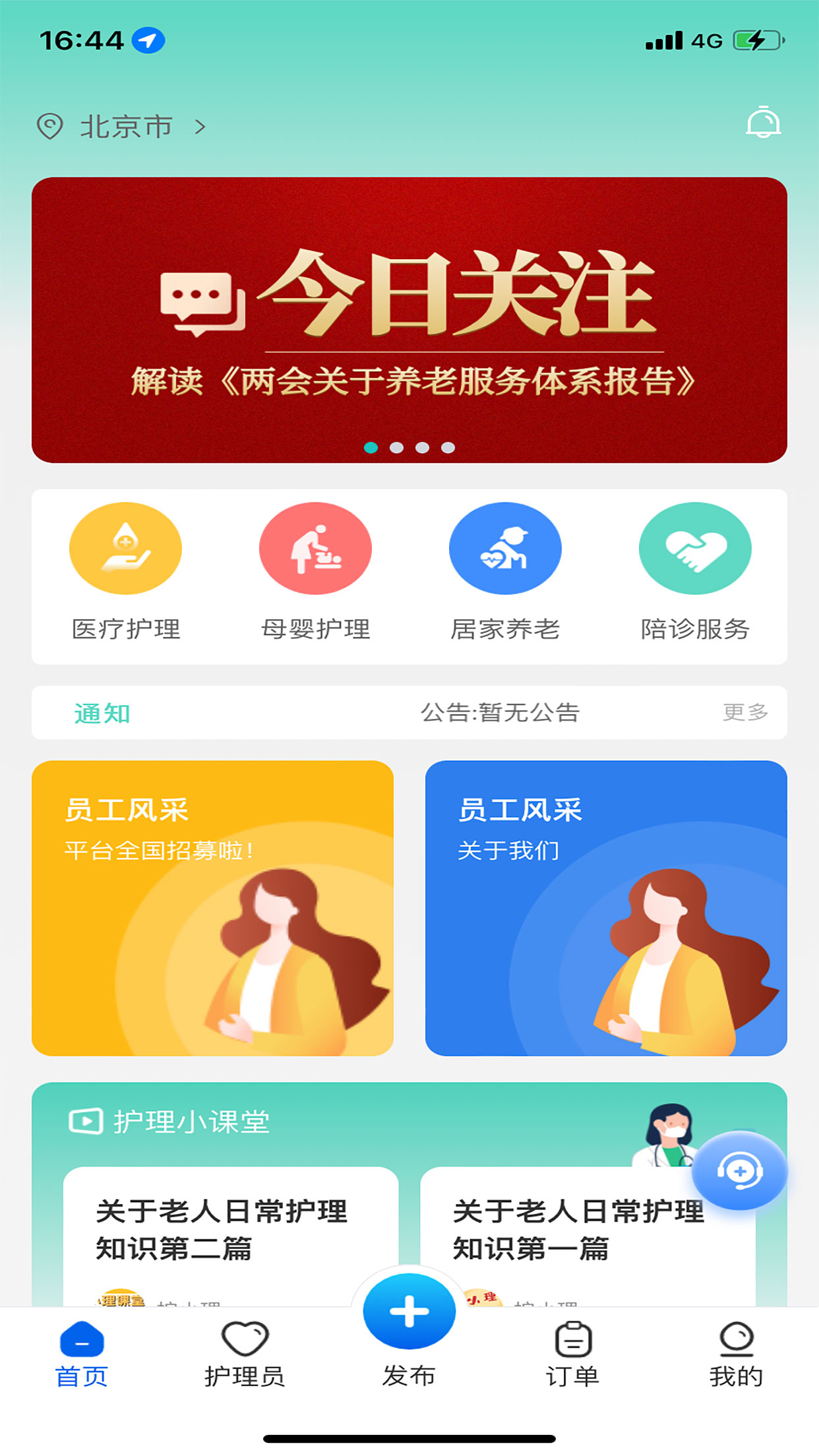 通过护小理app,用户可以发布订单选择自己喜欢的护工或者下单后等待护工来接单。具有订单发布,选择护工,护工抢单,在线支付,服务评价等功能。
