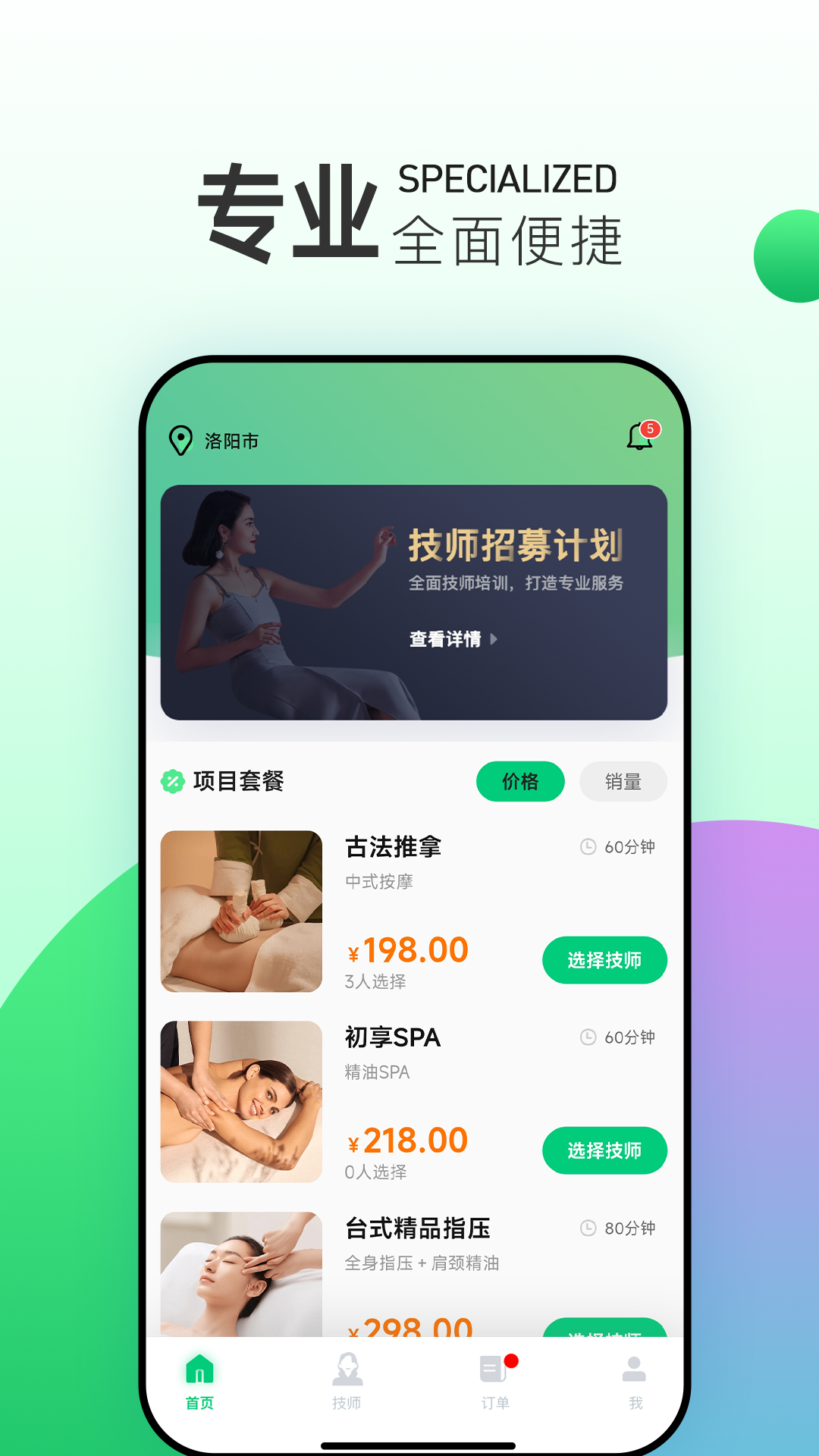 1、专业服务:平台对服务质量严格把控,以客户服务满意为中心提供优质的按摩服务