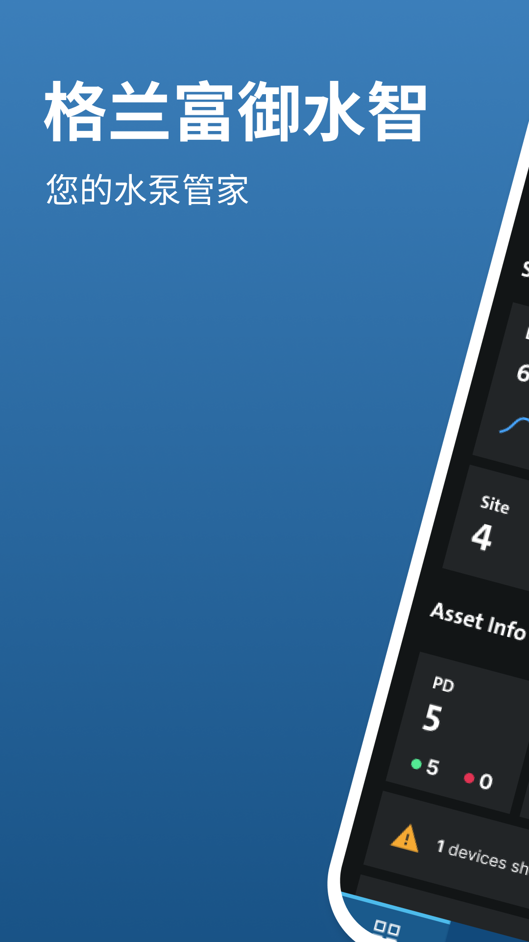 格兰富御水智-移动大师,是一款以水泵等动设备全生命周期管理为核心的App应用,用户可以在手机端查看连接设备的在线情况、实时数据和历史趋势,能够及时查看及处理异常报警事件。用户还可使用App对设备进行移动巡检和远程控制。