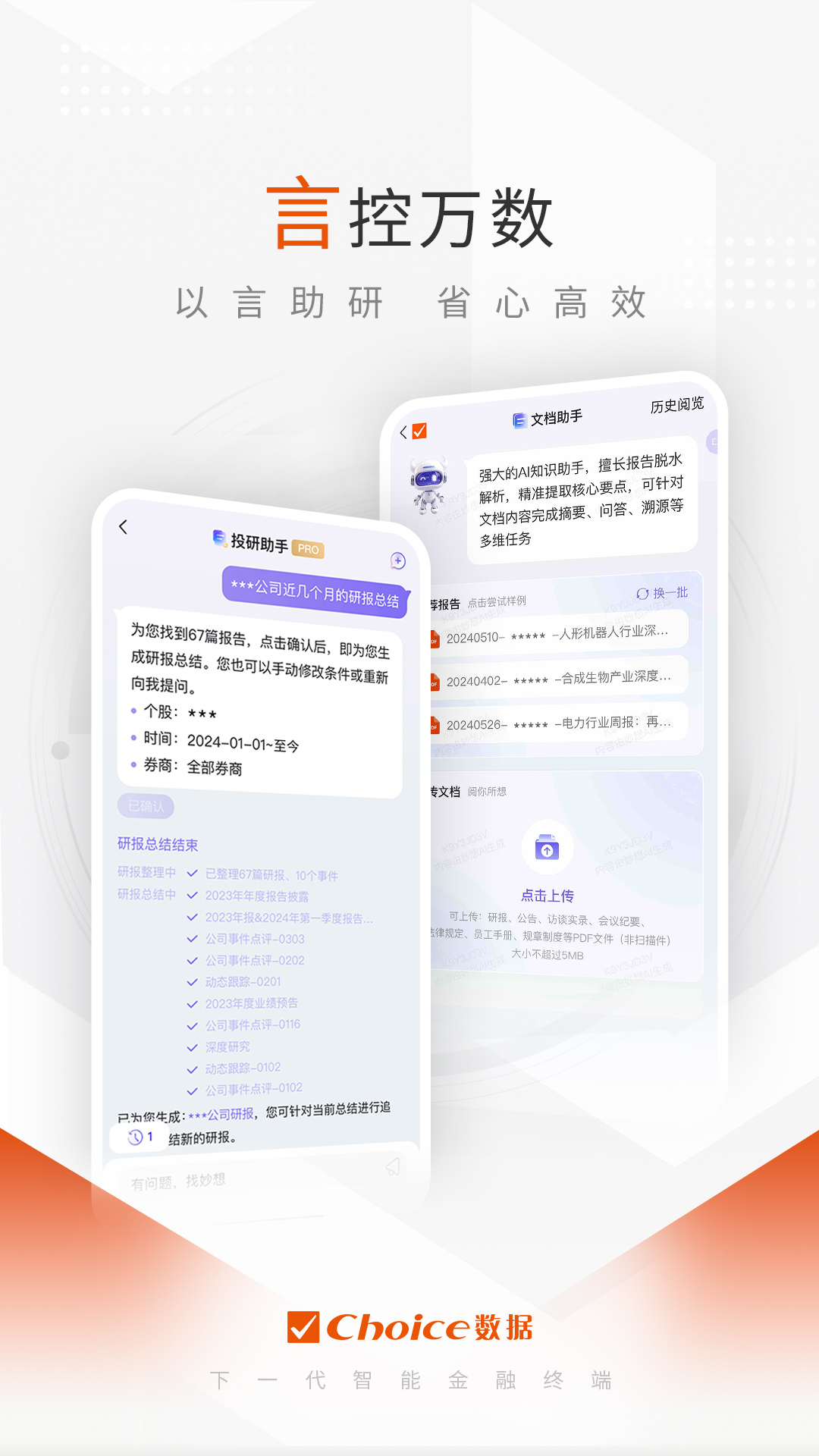 东方财富ChoiceAPP全新升级,下一代智能金融终端闪亮登场啦!其智能投研系列功能重磅推出,凭借AI技术,让数据的应用达到更快、更全、更准、更高效的水准。