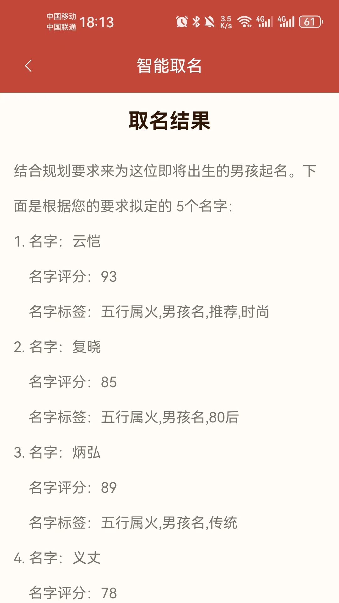 3. 智能取名:精心筛选出众多名字组合,提供海量名字作为取名时的参考。