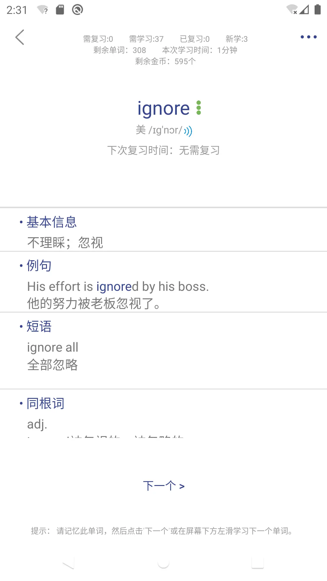 单词、例句、单词发音、例句发音、短语、同根词、近义词,所有功能全部免费开放