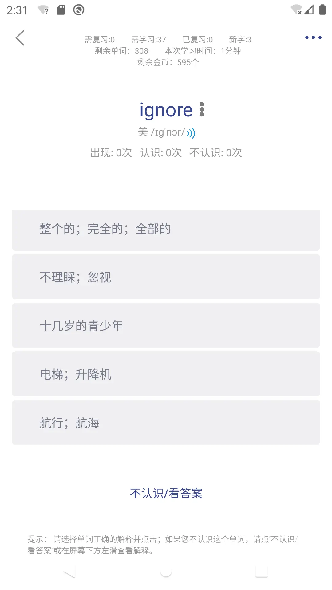 单词免费学习,海量词书,记忆程度实时展示,多种记忆模式!