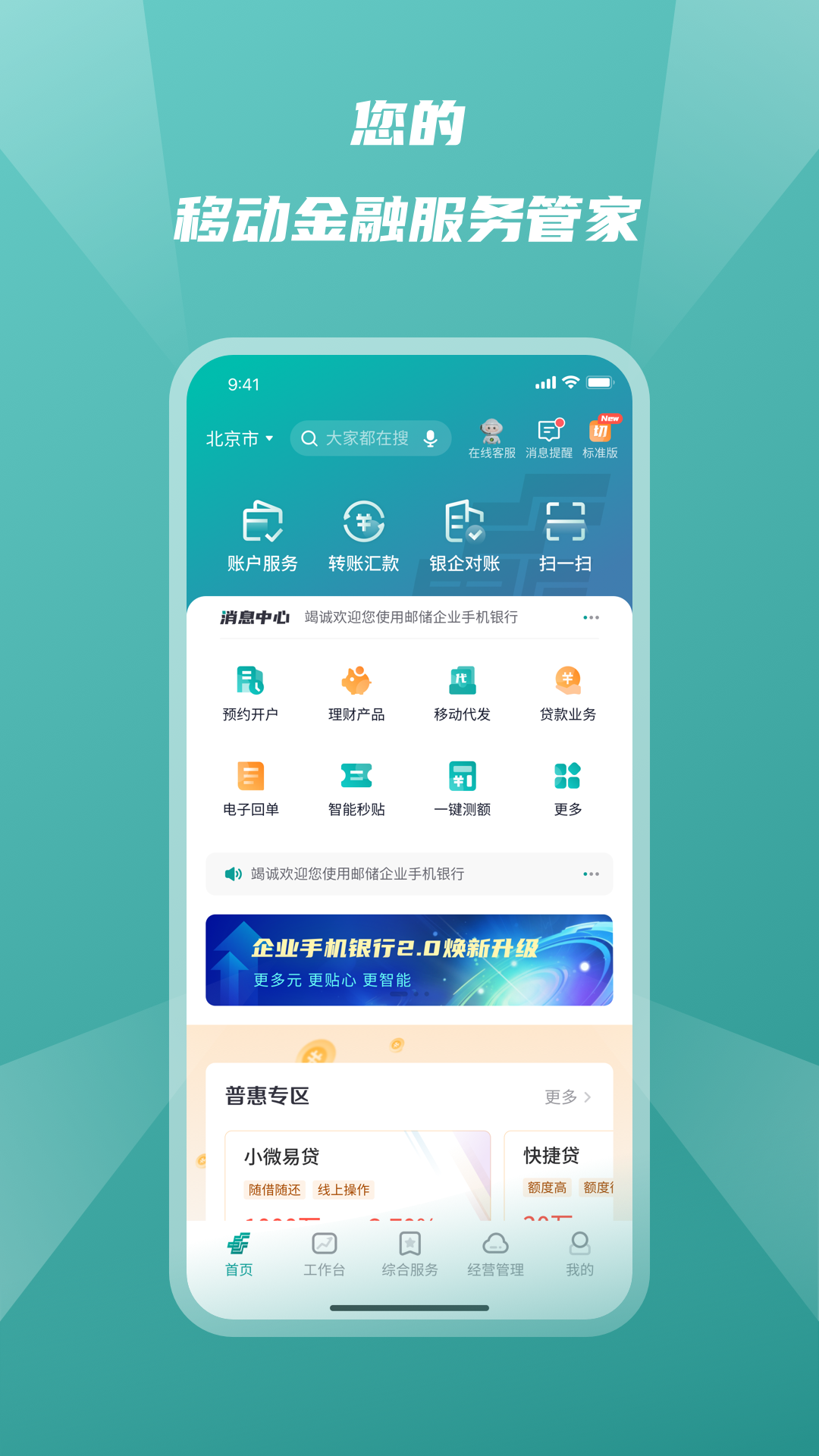 邮储银行企业手机银行(即“邮储企业银行”APP)是中国邮政储蓄银行面向企业推出的对公移动金融服务APP。它为客户提供种类繁多的金融与非金融产品及服务,能够很好地满足客户日常经营与财务管理方面的需求。