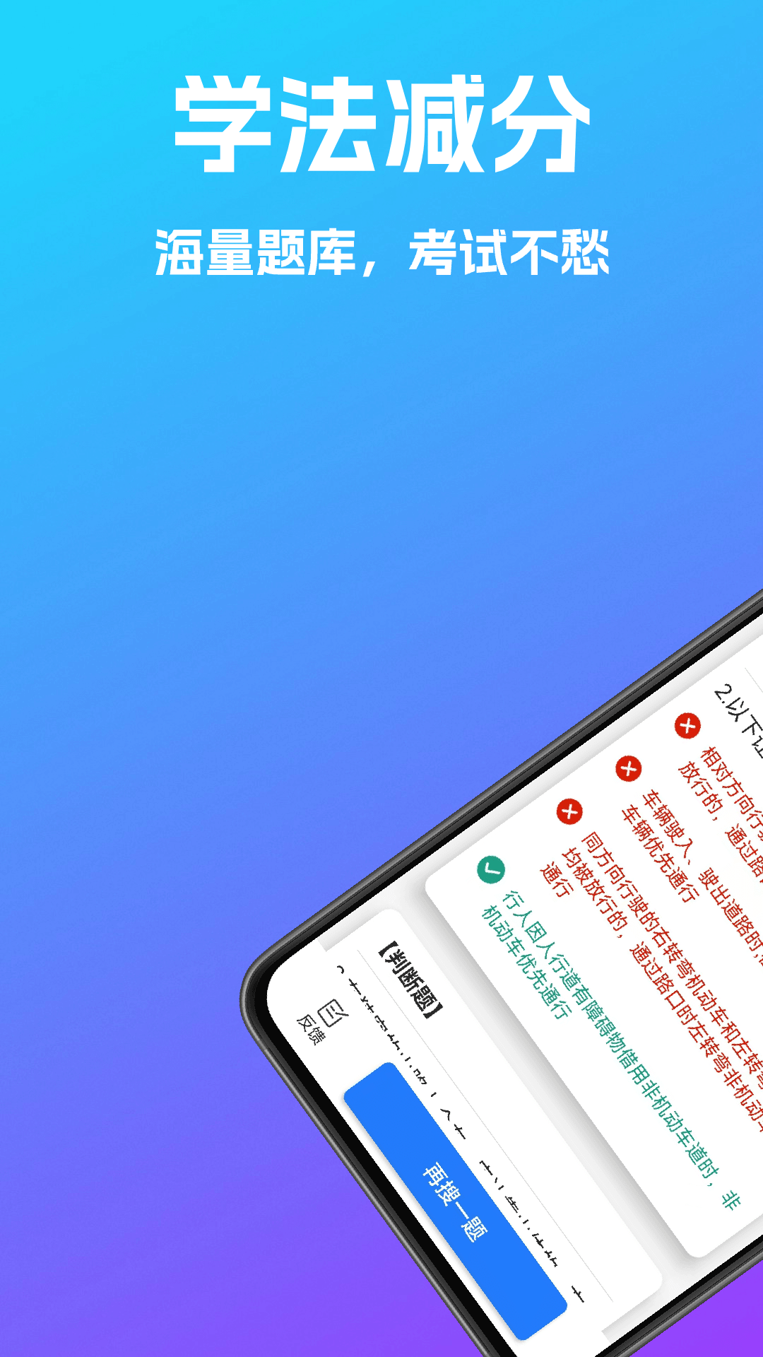 依据学法减分大纲的要求,模拟出逼真的考试场景,提前让考生适应考试环境,协助考生突破考试中的重点与难点部分。