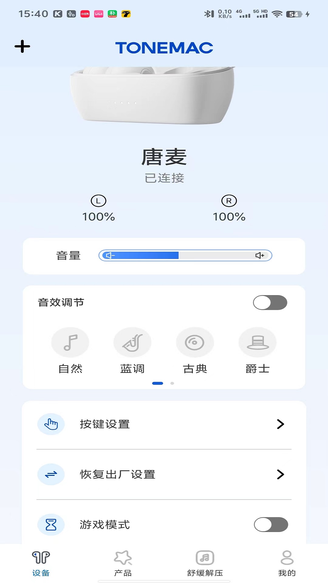 TONEMAC是一款手机软件,主要用于对TWS蓝牙耳机或者蓝牙头戴耳机进行管理与配置。它的核心功能包含了自定义耳机按键、自定义EQ(均衡器)、耳机OTA(空中下载技术)升级以及语言切换等功能。